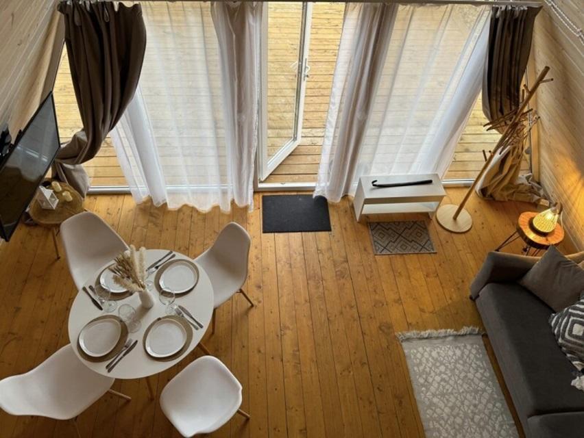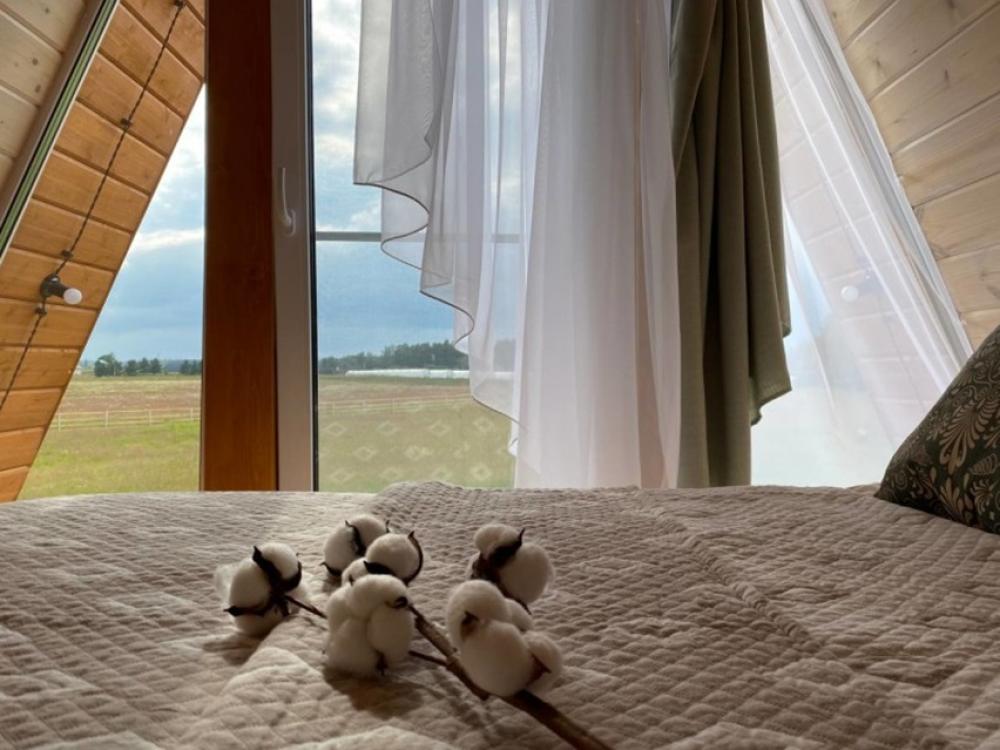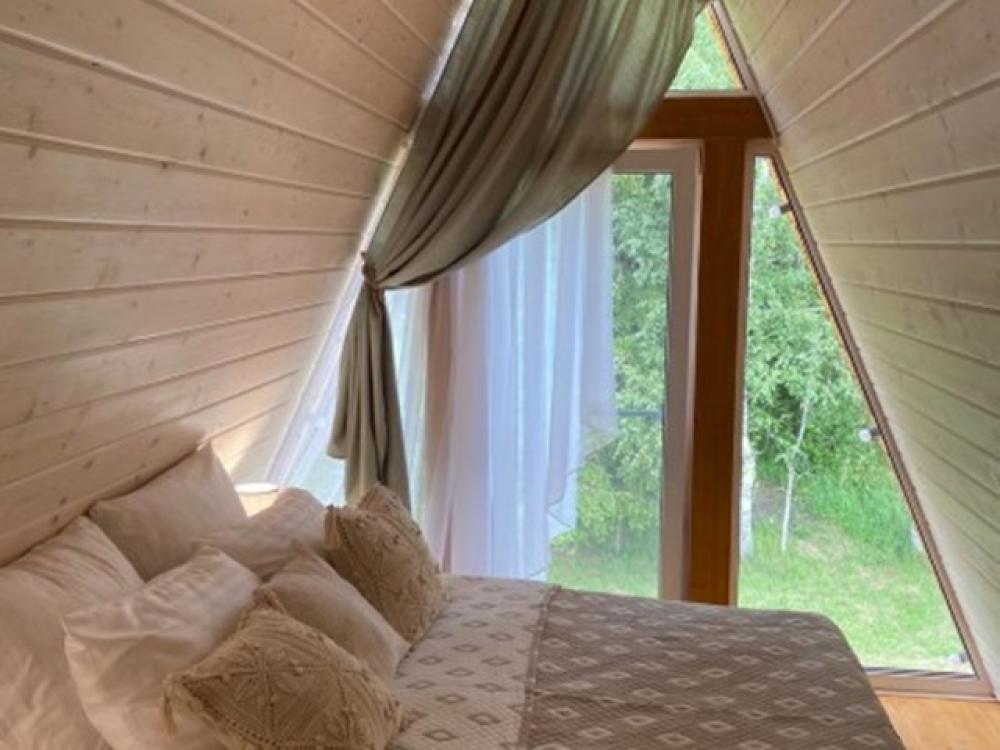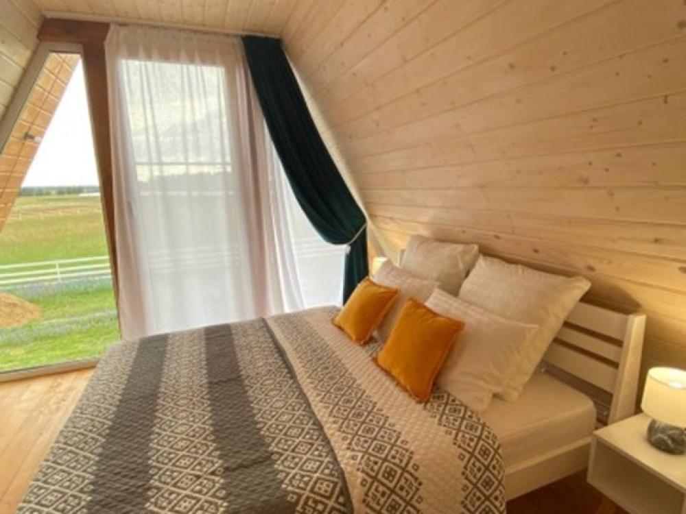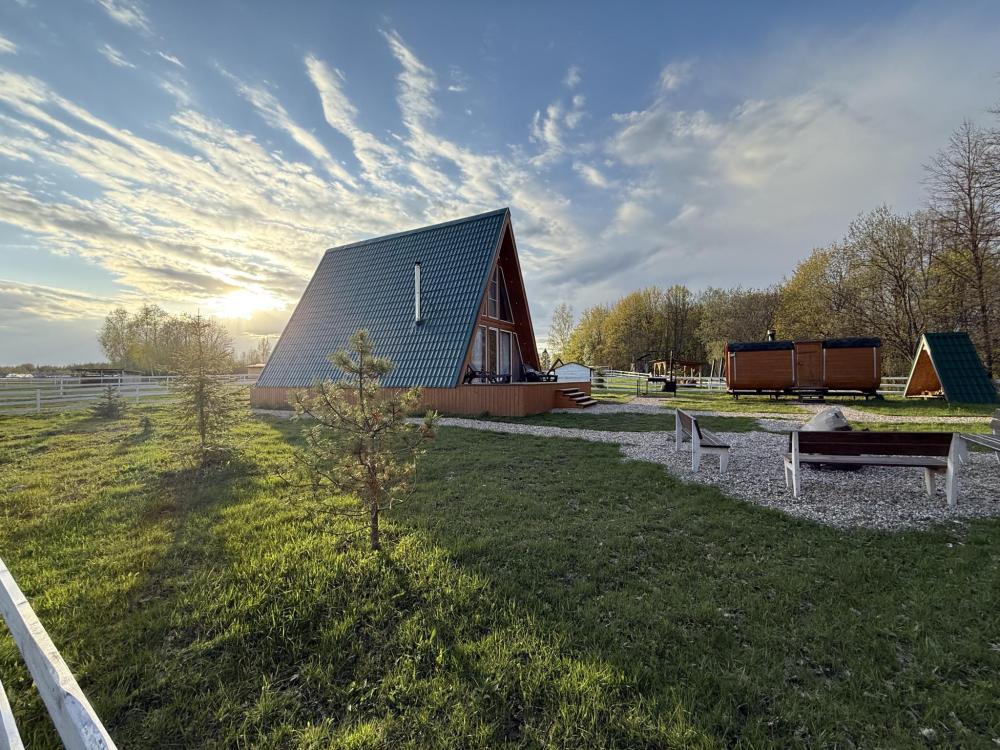 Уютный коттедж Medium площадью 85 кв.м. для размещения до 6-ти гостей. Для комфортного проживания гостей дом оснащен всем необходимым: двухспальная кровать на втором этаже, раскладывающийся диван в гостиной, полностью оснащенная кухня с посудой и бытовой техникой, печь-камин, комфортный санузел внутри дома. Отдельная территория домов с шезлонгами, прекрасный вид живой природы, фотозона в фермерском стиле для красивых фотографий, костровая зона у каждого дома, зона барбекю с беседками, парковка на территории базы отдыха.