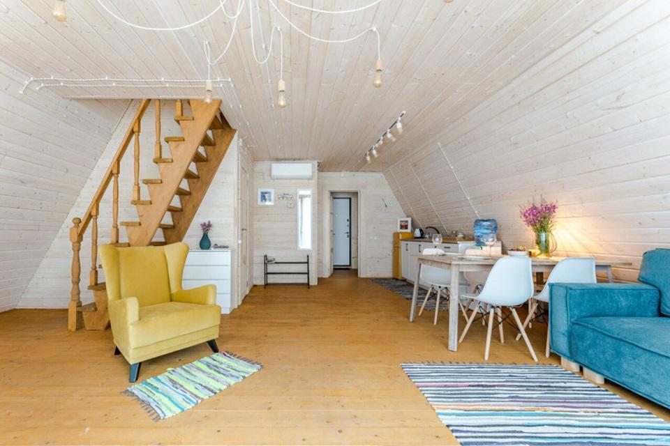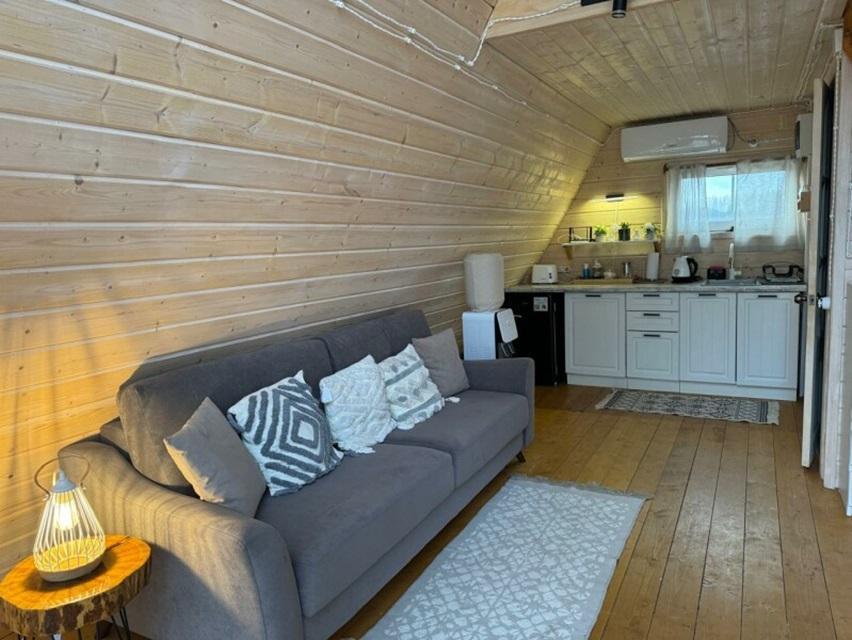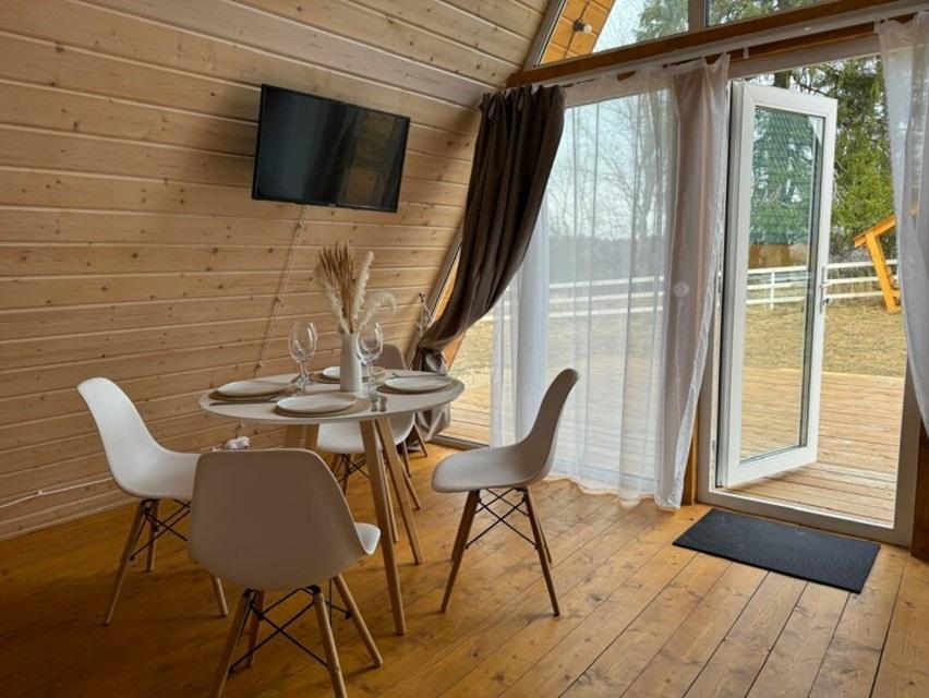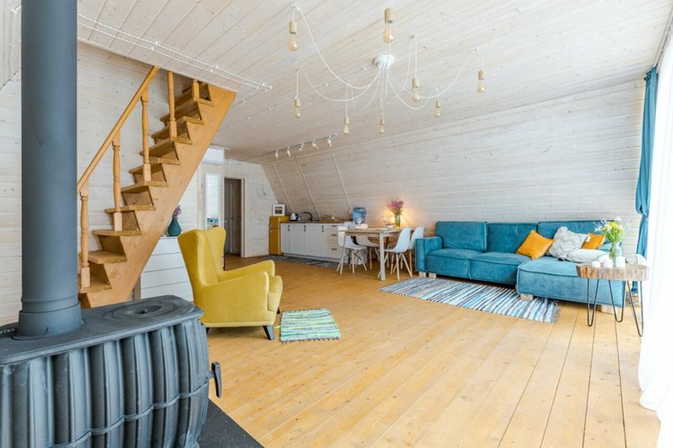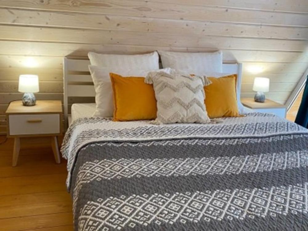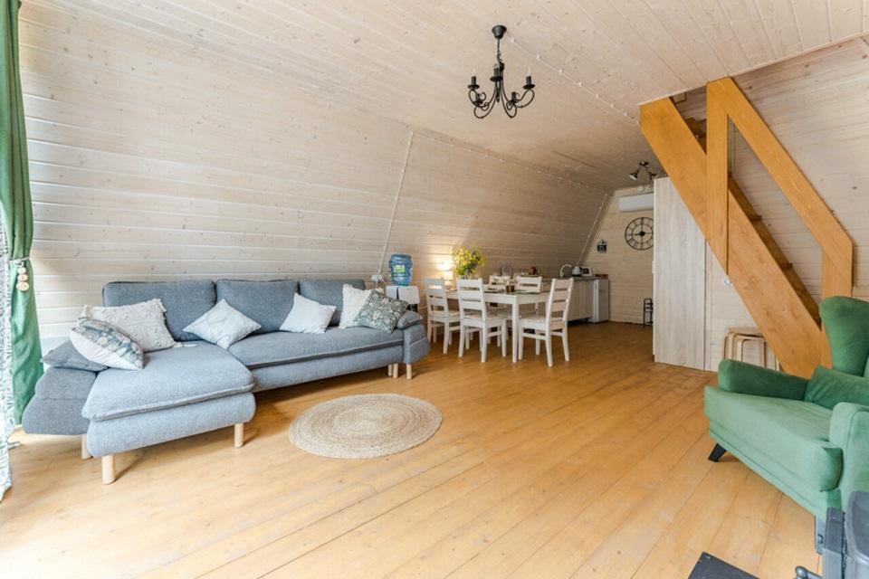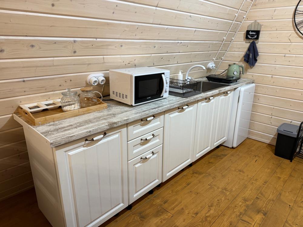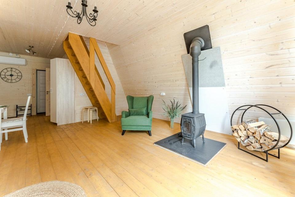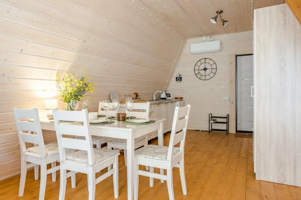 Уютный коттедж Small площадью 40 кв.м. для размещения до 4-х гостей. Для комфортного проживания гостей дом оснащен всем необходимым: двухспальная кровать на втором этаже, раскладывающийся диван в гостиной, полностью оснащенная кухня с посудой и бытовой техникой, печь-камин, комфортный санузел внутри дома. Отдельная территория домов с шезлонгами, прекрасный вид живой природы, фотозона в фермерском стиле для красивых фотографий, костровая зона у каждого дома, зона барбекю с беседками, парковка на территории базы отдыха.