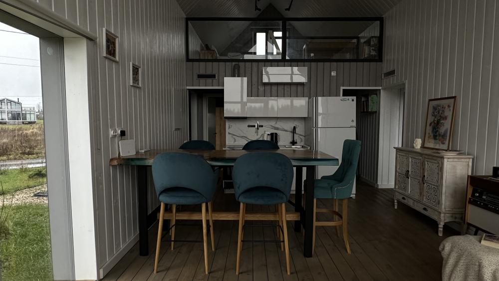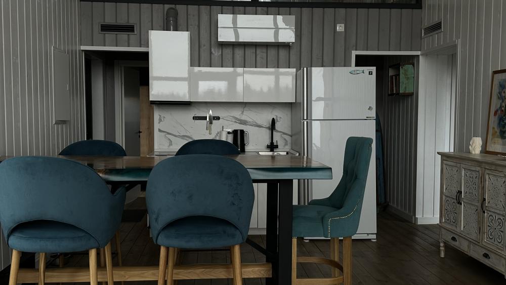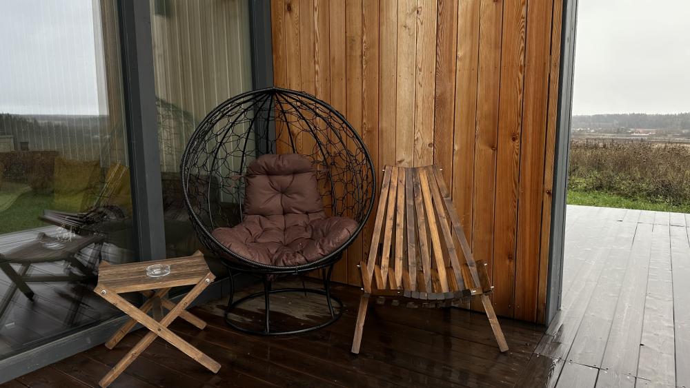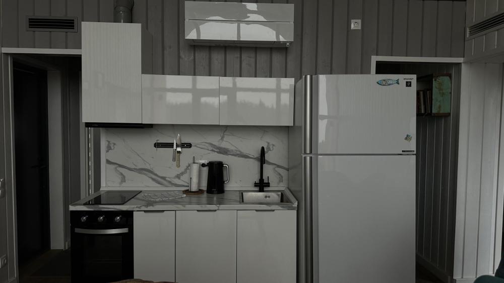 Пространство для отдыха (включая веранды 8 м² и 41 м²). Спальные зоны: спальня 1 (изолированная) - двуспальная кровать (140 см); спальня 2 (изолированная) - две полуторные кровати; спальня 3 - на втором этаже - двуспальная кровать. Общие зоны: просторная гостиная; современная кухня; две веранды - для завтраков и вечерних посиделок. Комфорт и удобства: холодильник, духовка, посудомоечная машина; базовые продукты: чай, кофе, соль, сахар, масло; полотенца, средства для душа, фен; мангал - для приготовления шашлыков на свежем воздухе; терраса с удобными креслами - для отдыха и созерцания природы. Дополнительно: возможность аренды бани с чаном (в посёлке); доступ к бесплатной доставке из «ВкусВилл» и Delivery Club.
