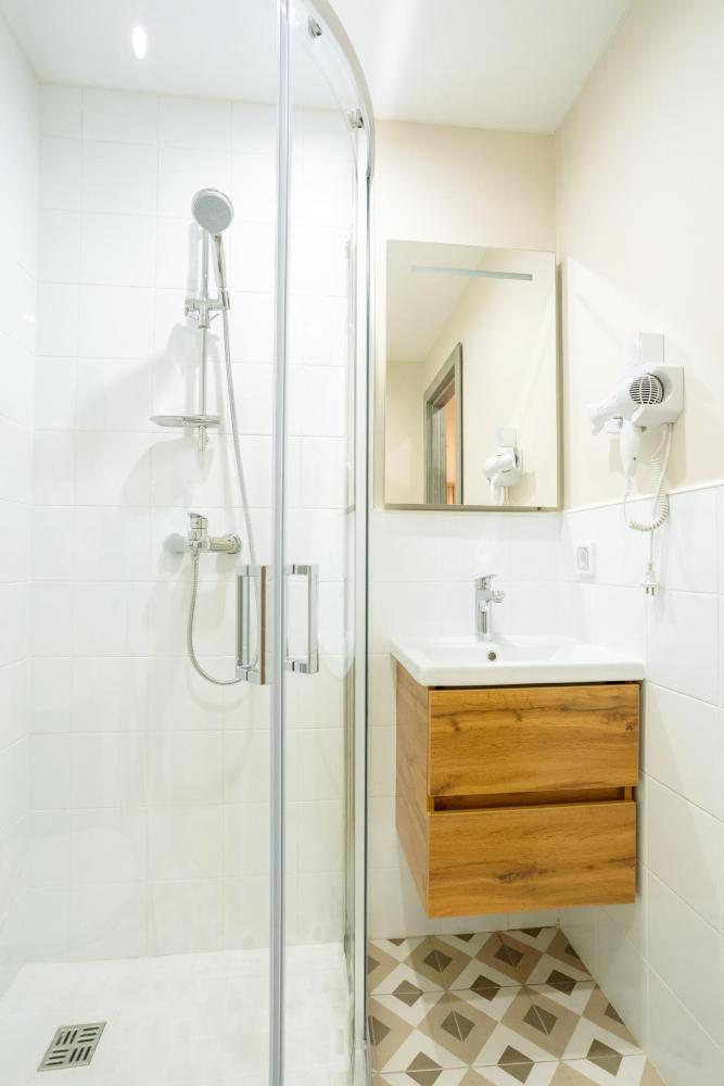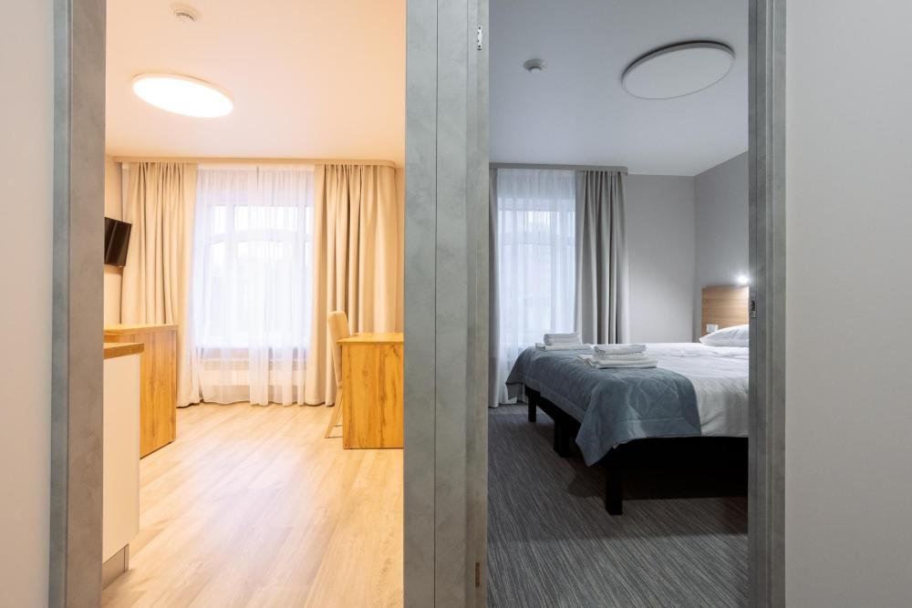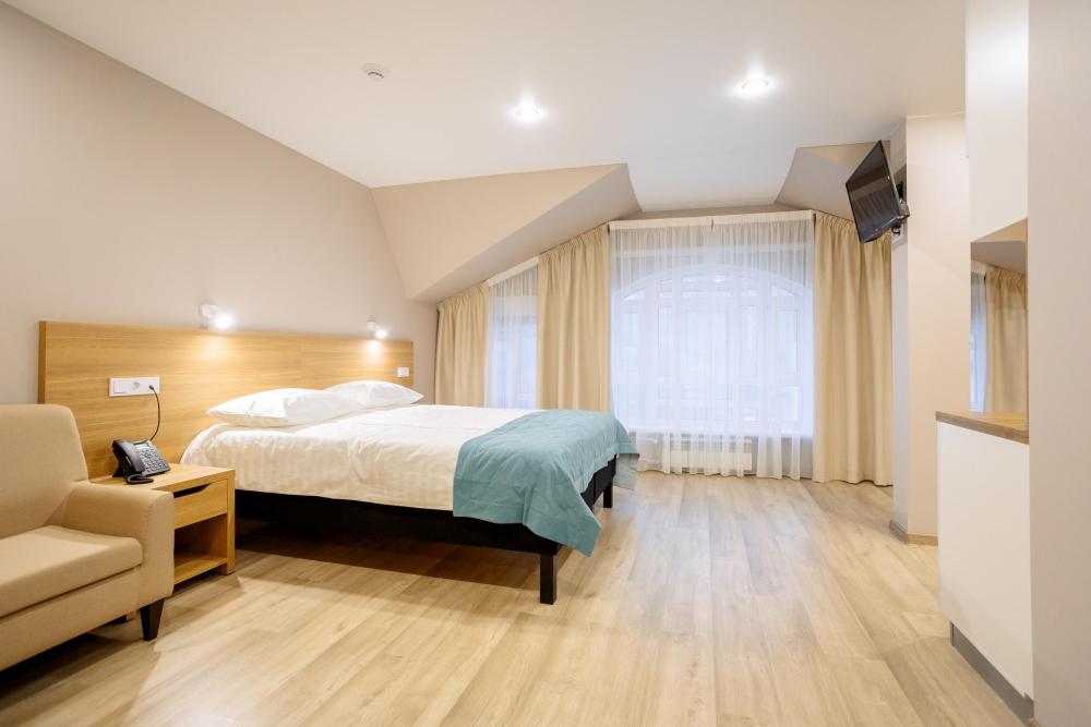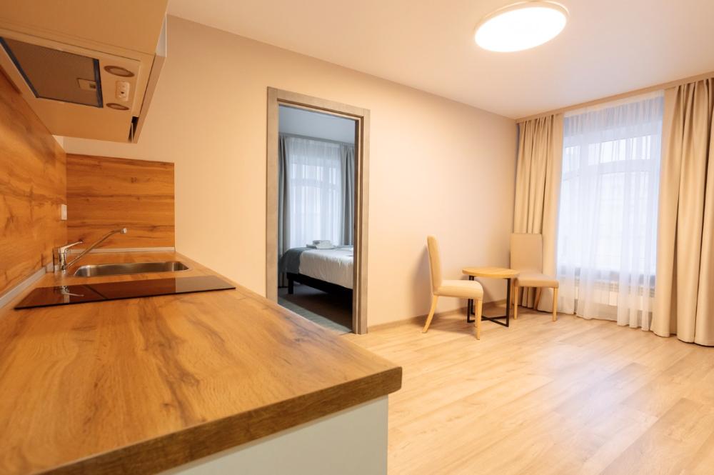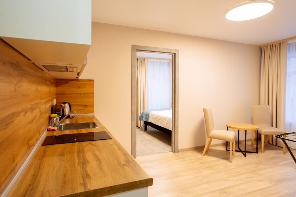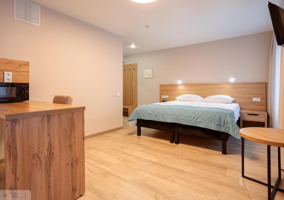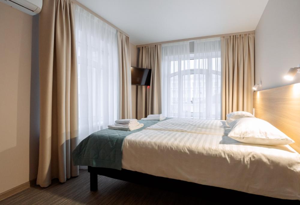 Двуспальная большая кровать или 2 односпальные кровати, тв, wifi, кухонная зона с техникой (варочная панель, микроволновая печь) и посудой; душевая кабина, фен, комплект полотенец, косметические принадлежности, стиральная машина.