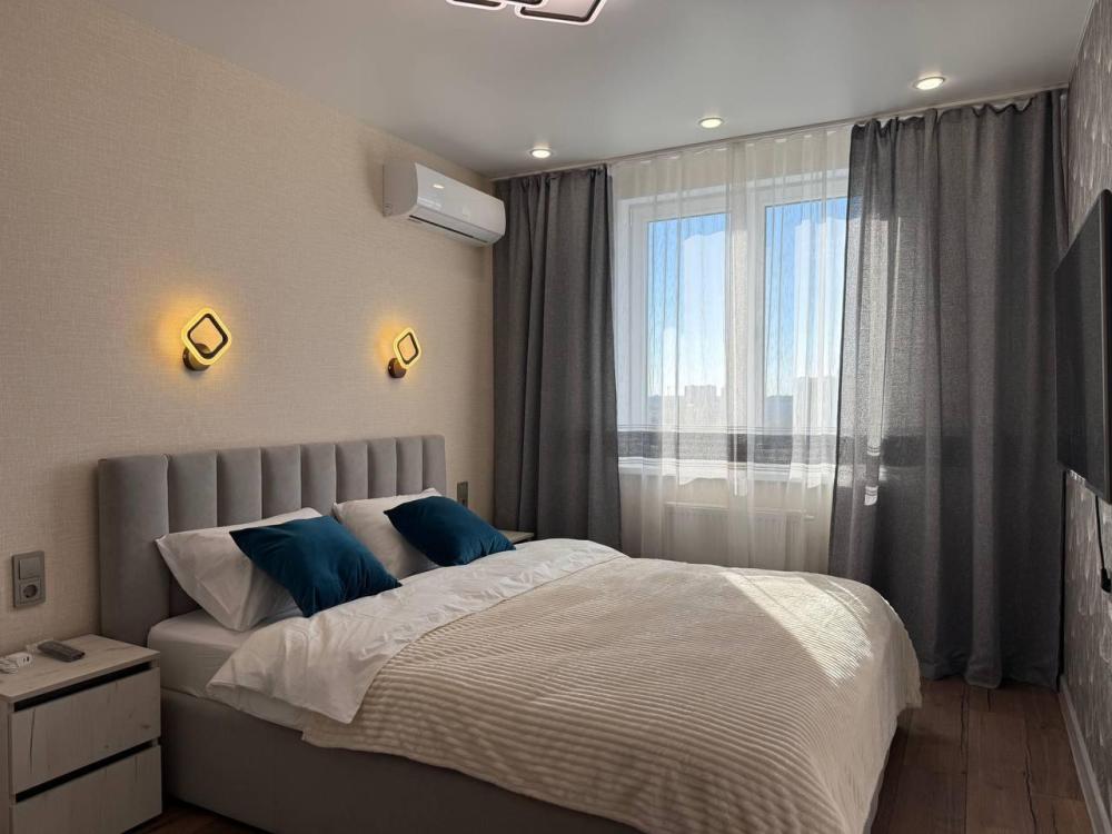 Квартира Евро-2 в одном самых современных домов Рязани. В тихом и живописном районе. Развитая инфраструктура. Современная детская площадка. Закрытая территория. Апартаменты с современным ремонтом и мебелью. В квартире есть всё для вашего удобства: большой телевизор, smart-tv, Wi-Fi, двуспальная кровать, диван-кровать. Вся необходимая кухонная утварь: микроволновая печь, холодильник, чайник, плита, обеденный стол со стульями. В ванной комнате: стиральная машина, душевая кабина, фен, утюг, сушилка