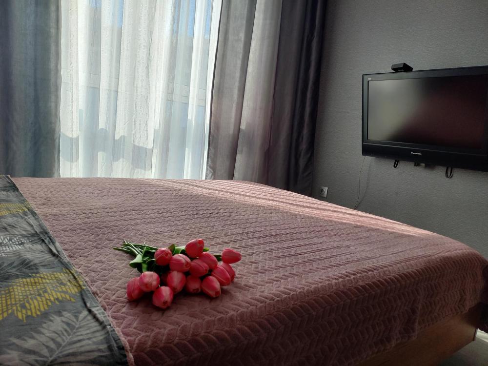 Сдается современная однокомнатная квартира. В квартире имеется все необходимое для проживания: застеленное чистое постельное бельё, полотенца и средства личной гигиены, плазменный телевизор/кабельное телевидение. Бесплатный, высокоскоростной Wi-Fi. Оборудованная кухня, посуда/столовые приборы, холодильник с морозильной камерой, кухонная плита/духовой шкаф, микроволновая печь, электрический чайник, стиральная машина/утюг, ванна/душ, мебель, стол, стулья.