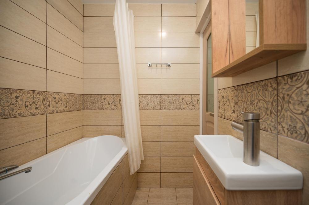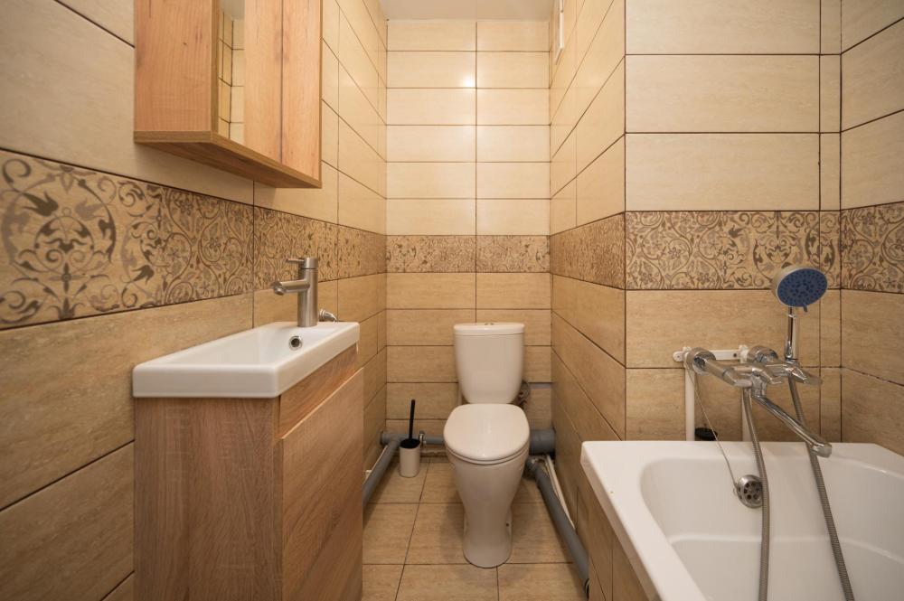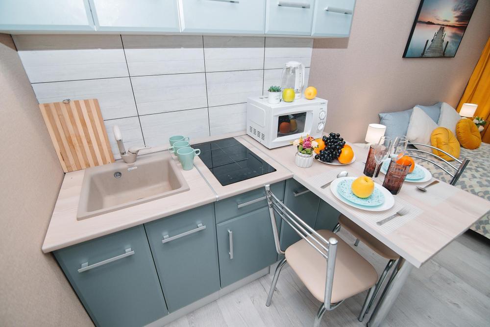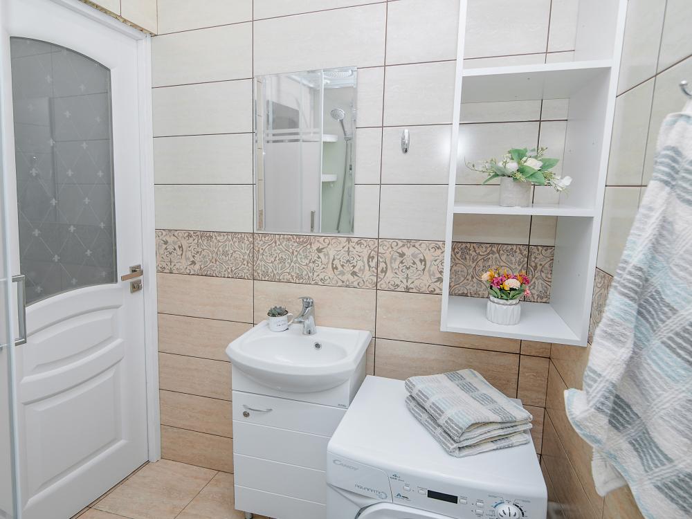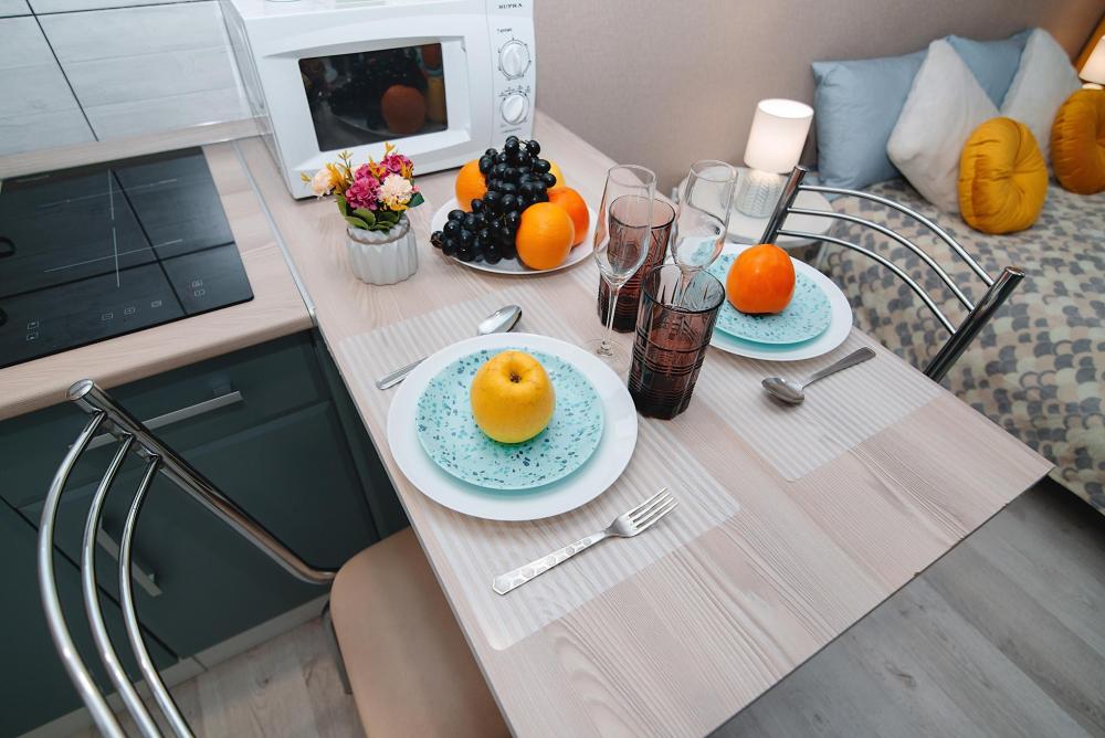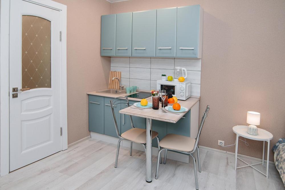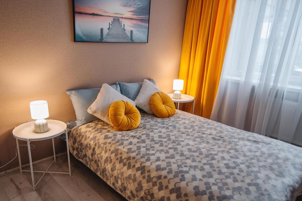 Уютные апартаменты студия, оборудованные всем необходимым для комфортного проживания. В апартаментах: удобная двуспальная кровать, кабельное телевидение, Wi-Fi. Бытовая техника: холодильник, духовка, микроволновка, стиральная машинка, утюг, гладильная доска, фен, чайник, пылесос. Полный комплект посуды для готовки и приёма пищи.