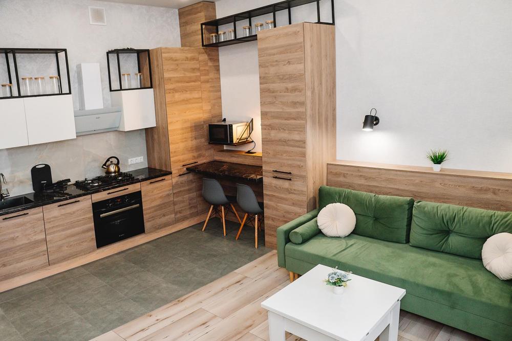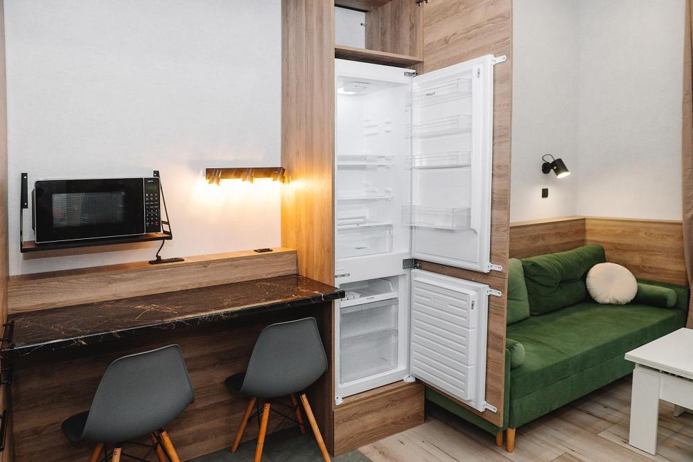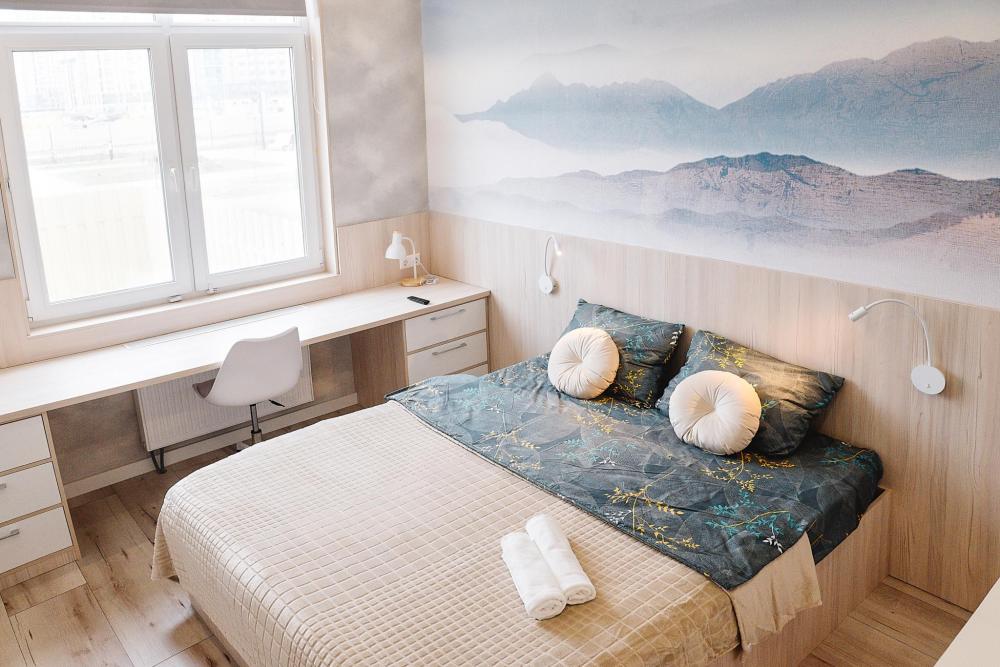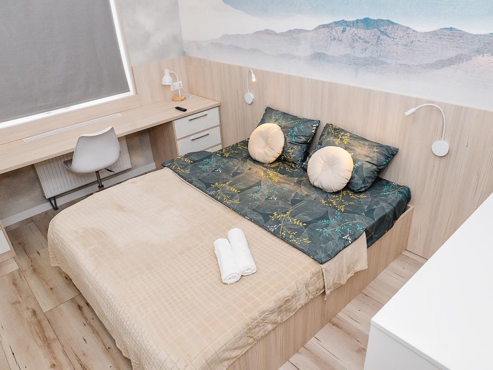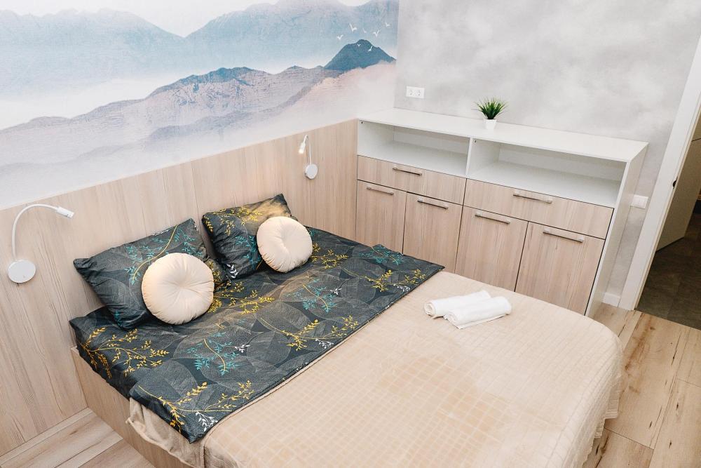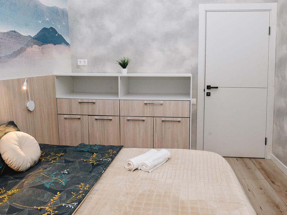 Уютные однокомнатные апартаменты, оборудованные всем необходимым для комфортного проживания. В квартире есть все необходимое: удобная двуспальная кровать, быстрый Wi-Fi, телевизор, стиральная машина, микроволновая печь, холодильник, газовая варочная панель, электрический чайник, посуда, столовые приборы, чистое постельное белье, полотенца.