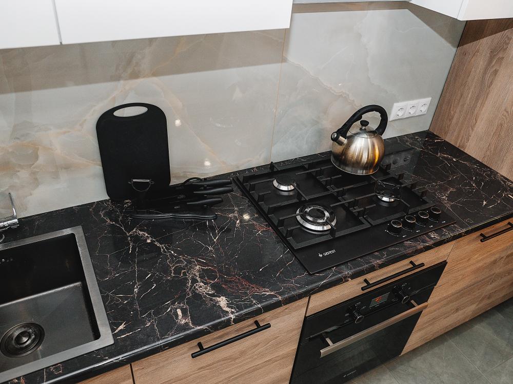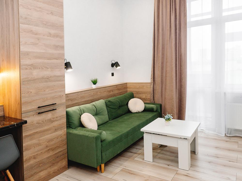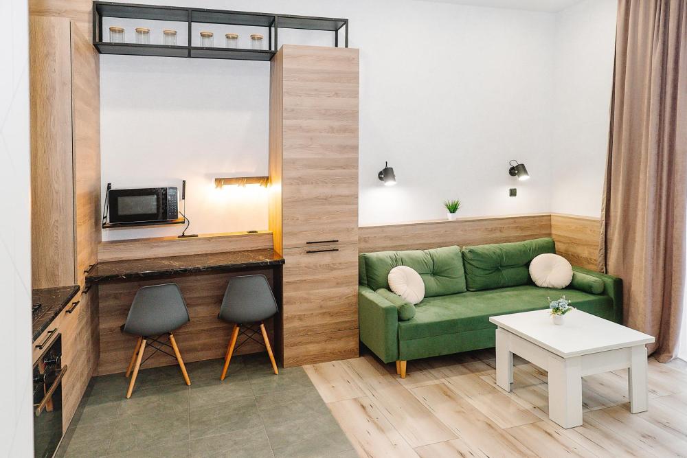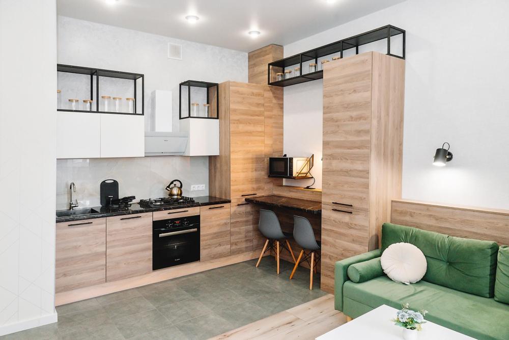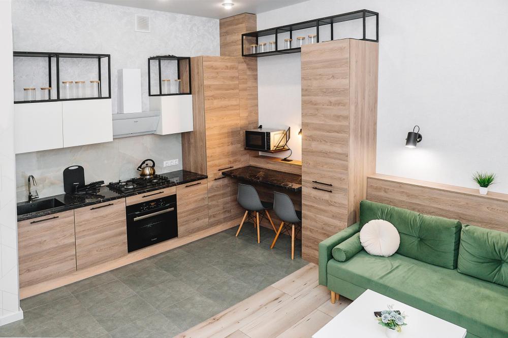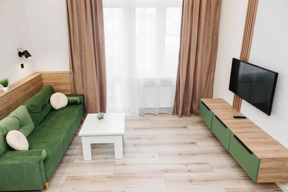 Уютные однокомнатные апартаменты, оборудованные всем необходимым для комфортного проживания. В квартире есть все необходимое: удобная двуспальная кровать, быстрый Wi-Fi, телевизор, стиральная машина, микроволновая печь, холодильник, газовая варочная панель, электрический чайник, посуда, столовые приборы, чистое постельное белье, полотенца.