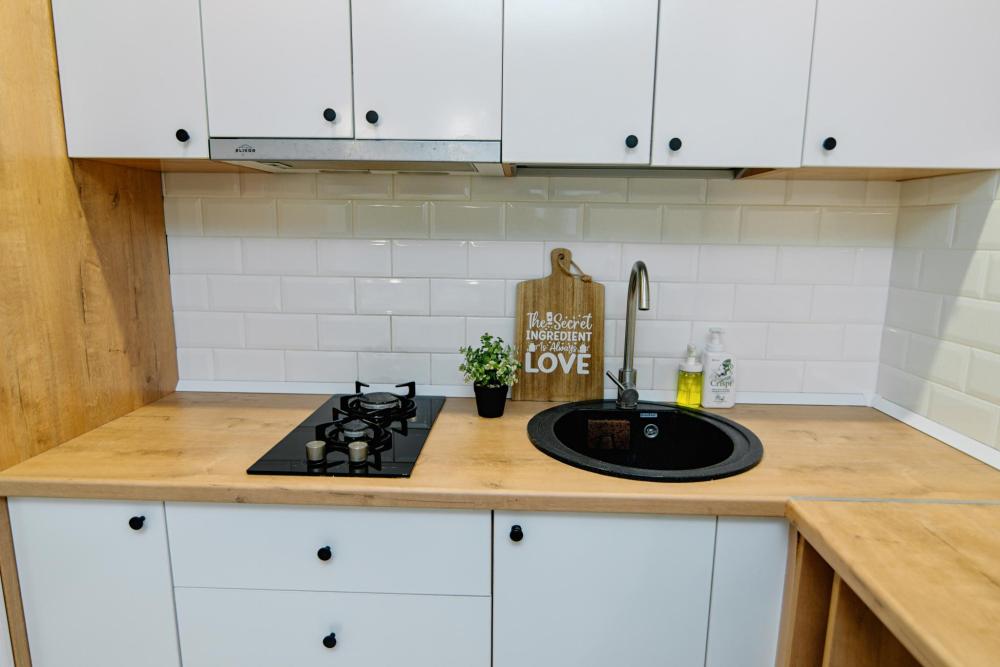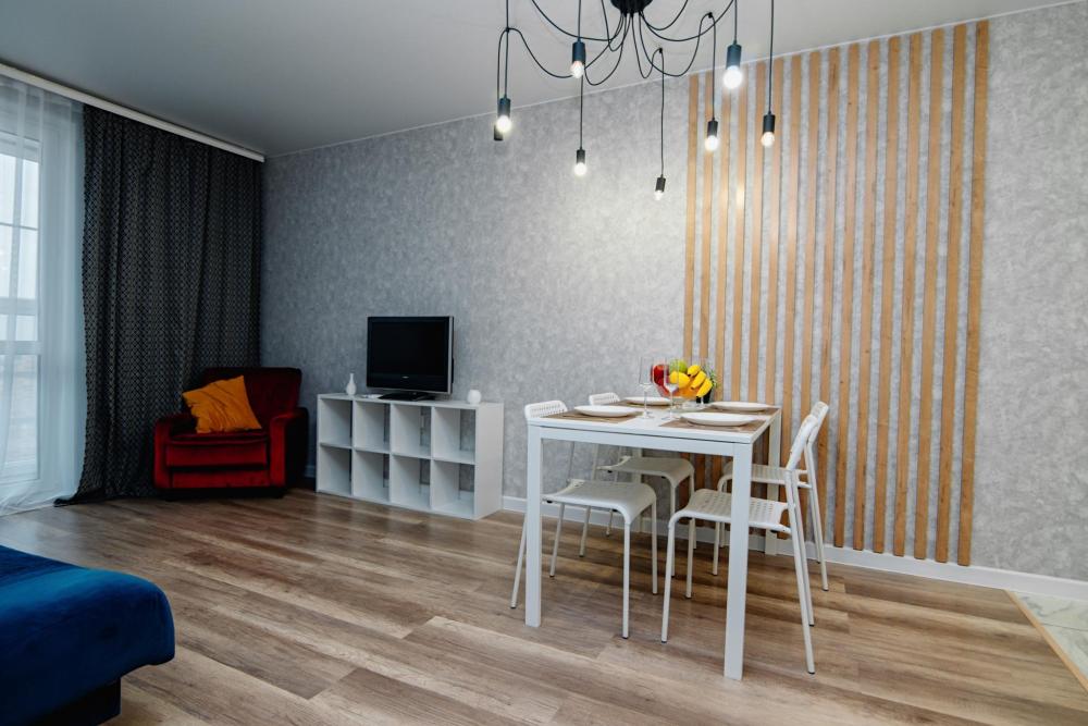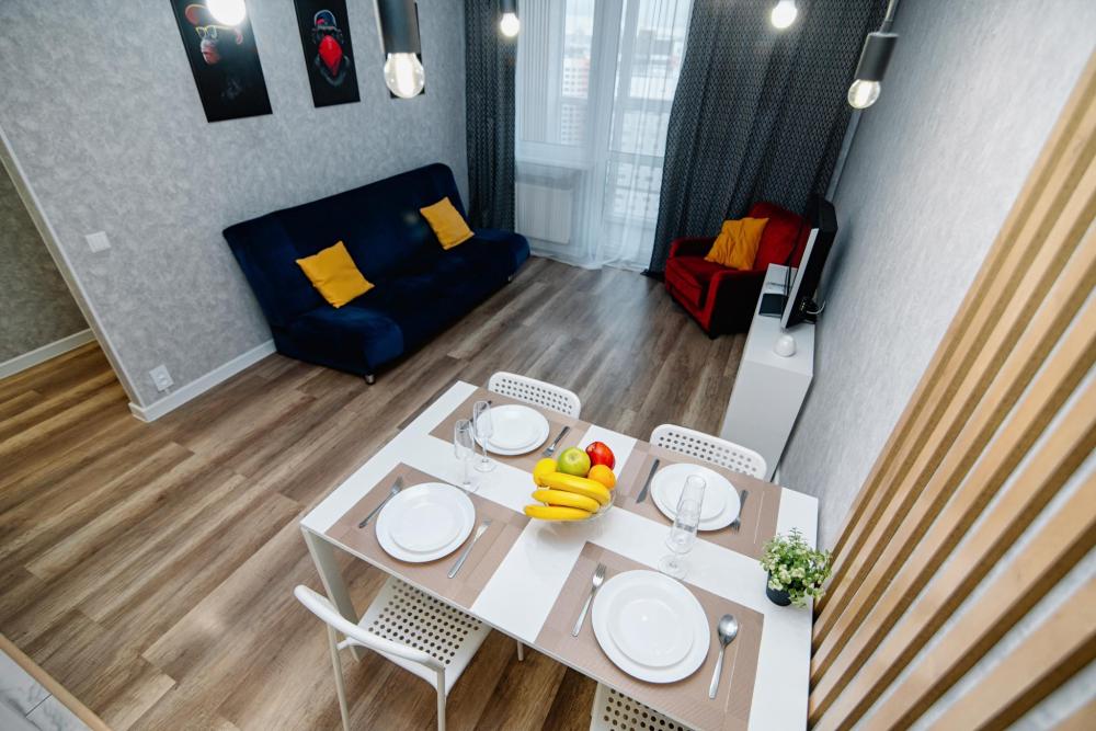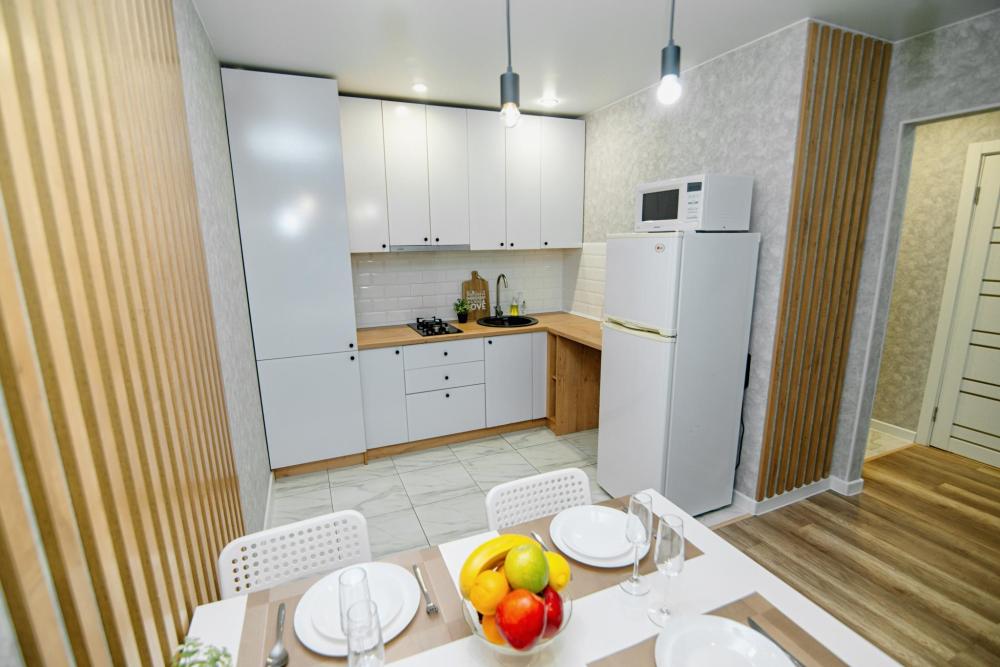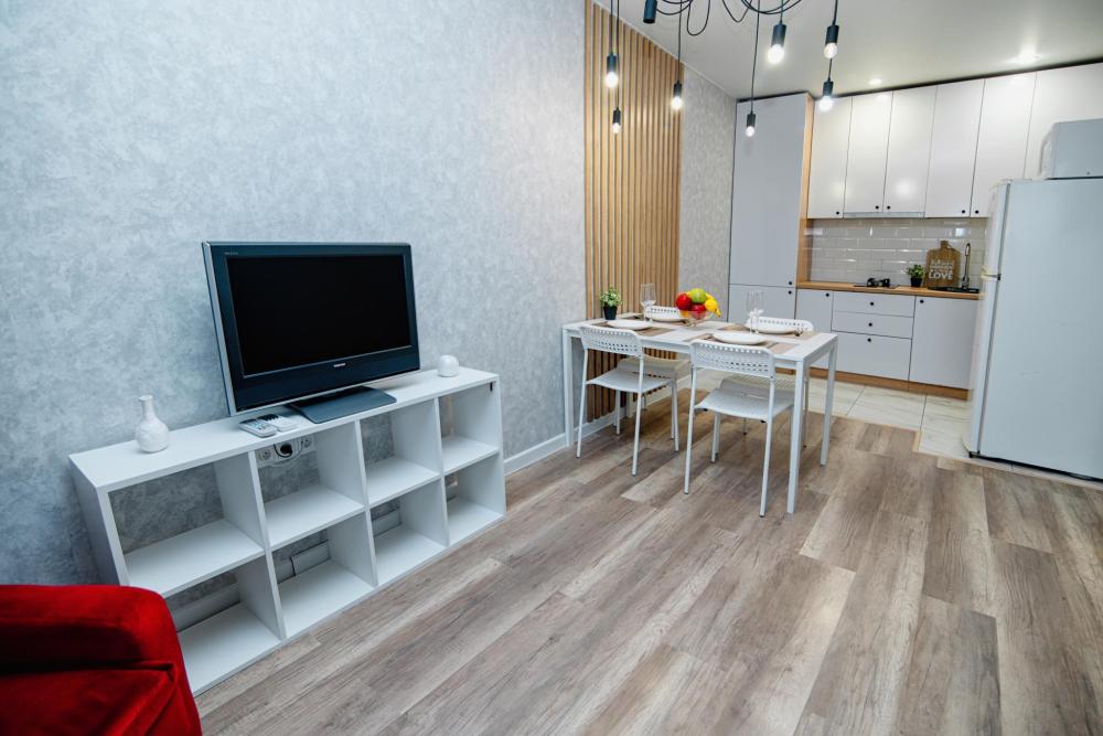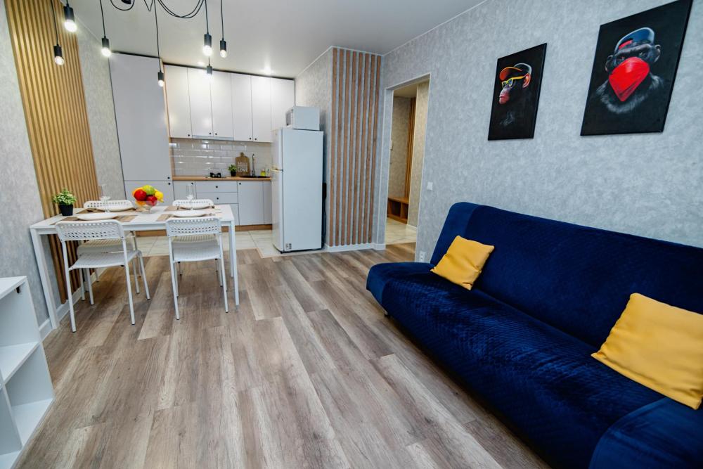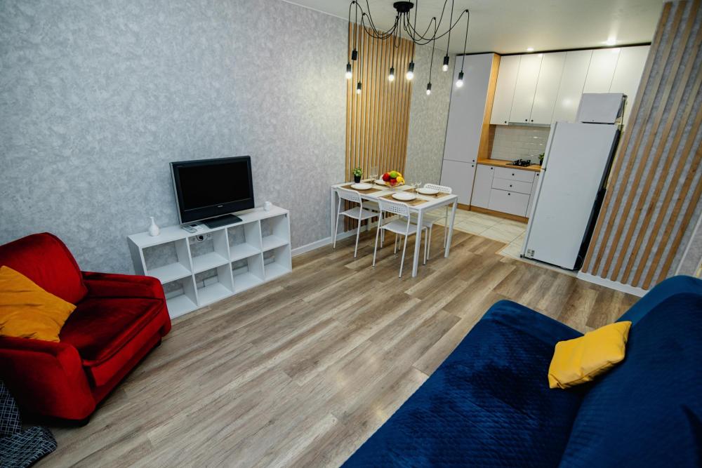 Уютные апартаменты студия, оборудованные всем необходимым для комфортного проживания. В квартире есть все необходимое: удобная двуспальная кровать, диван, быстрый Wi-Fi, телевизор, стиральная машина, микроволновая печь, холодильник, газовая варочная панель, электрический чайник, посуда, столовые приборы, чистое постельное белье, полотенца.