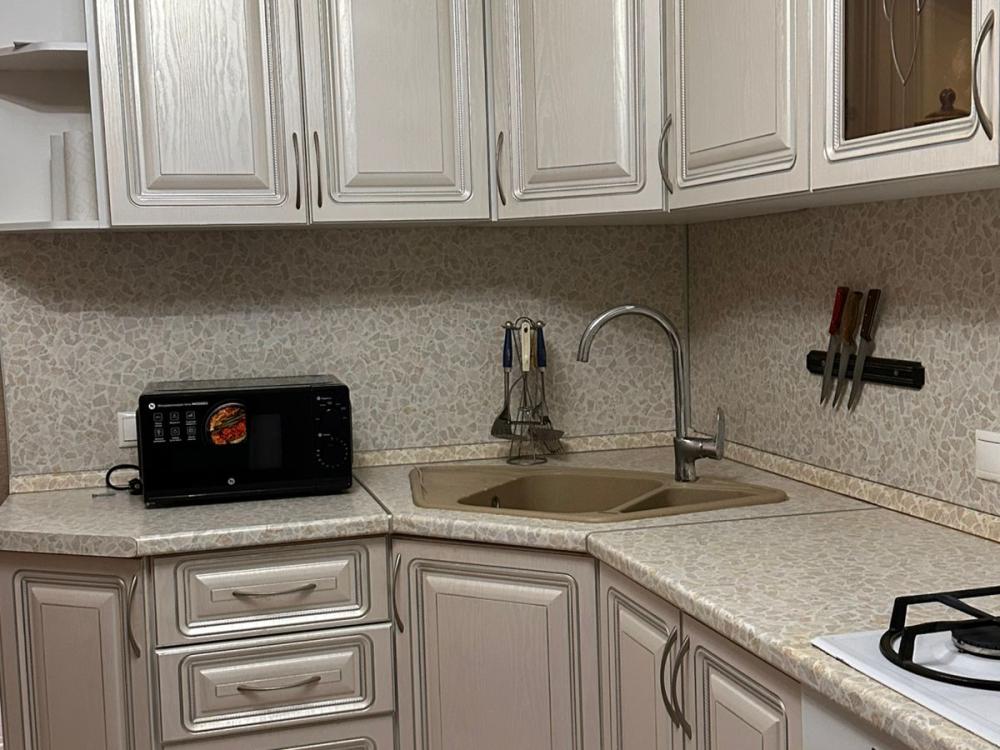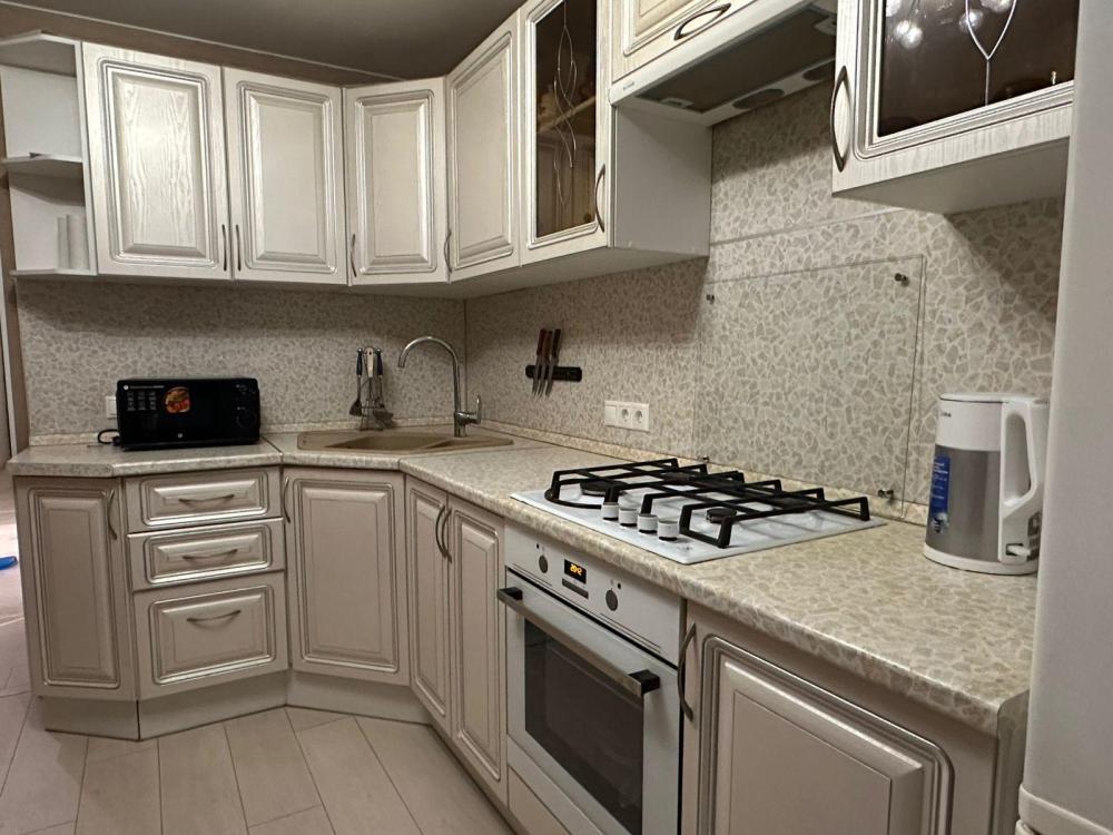 Кухня полностью оборудована посудой и бытовой техникой. На кухне имеется: газовая плита, холодильник, микроволновка, электрочайник. Посуда для приготовления и употребления пищи.