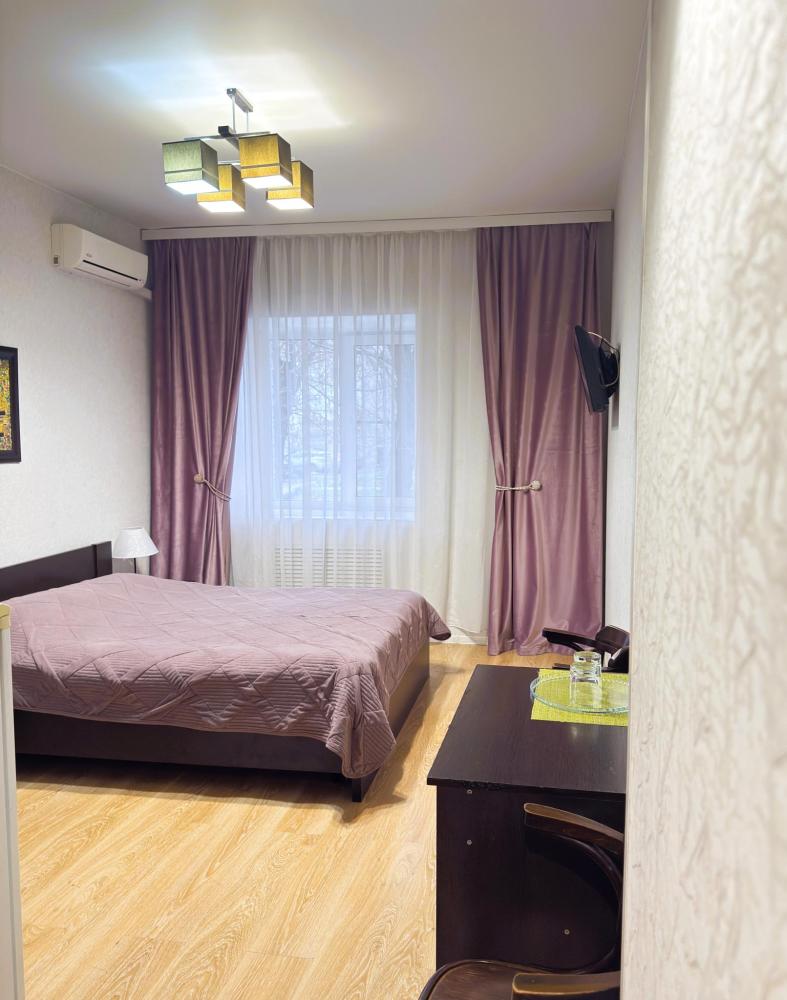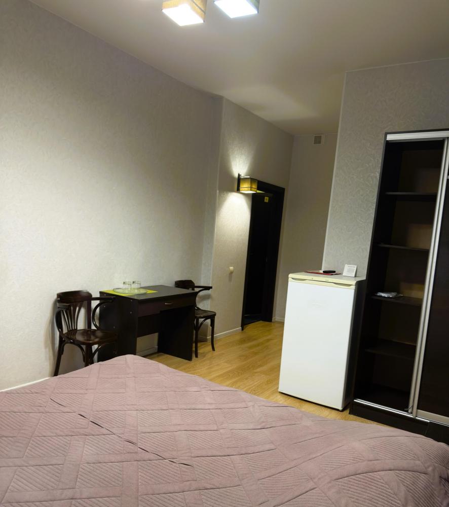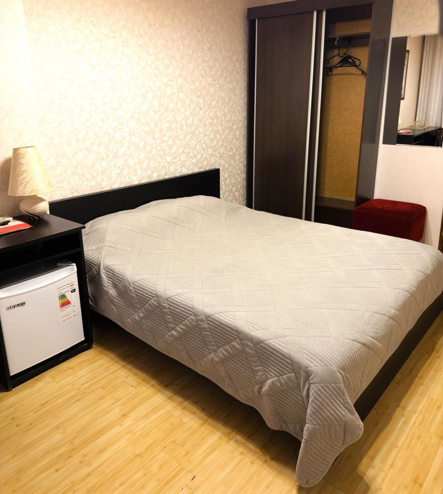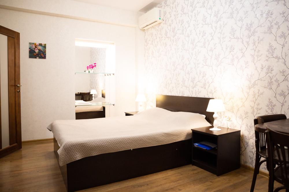 В номере: двуспальная кровать, стол, стулья, шкаф, прикроватные тумбочки, кондиционер, тумбочка, телевизор, холодильник. В ванной: туалет, раковина, душ, душевая кабина.