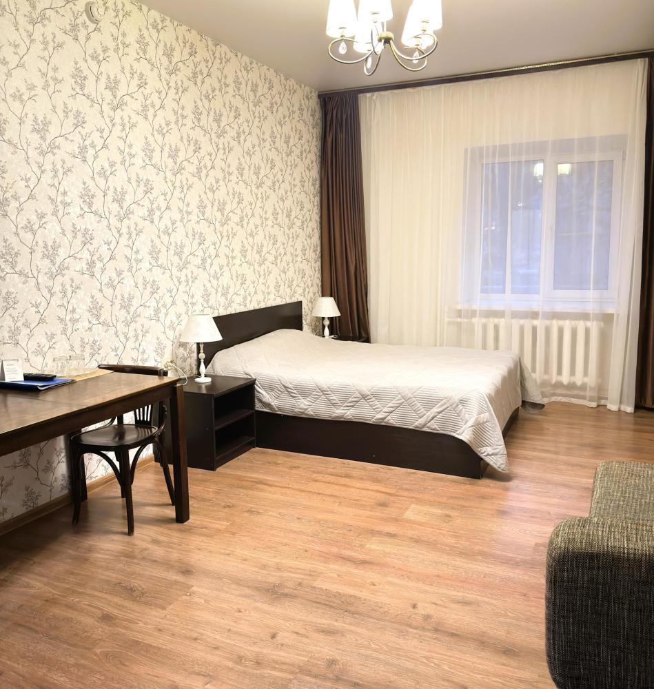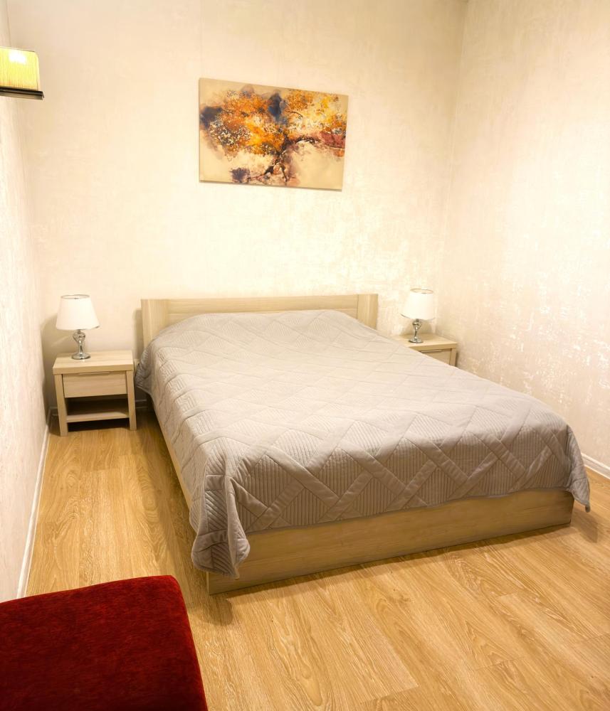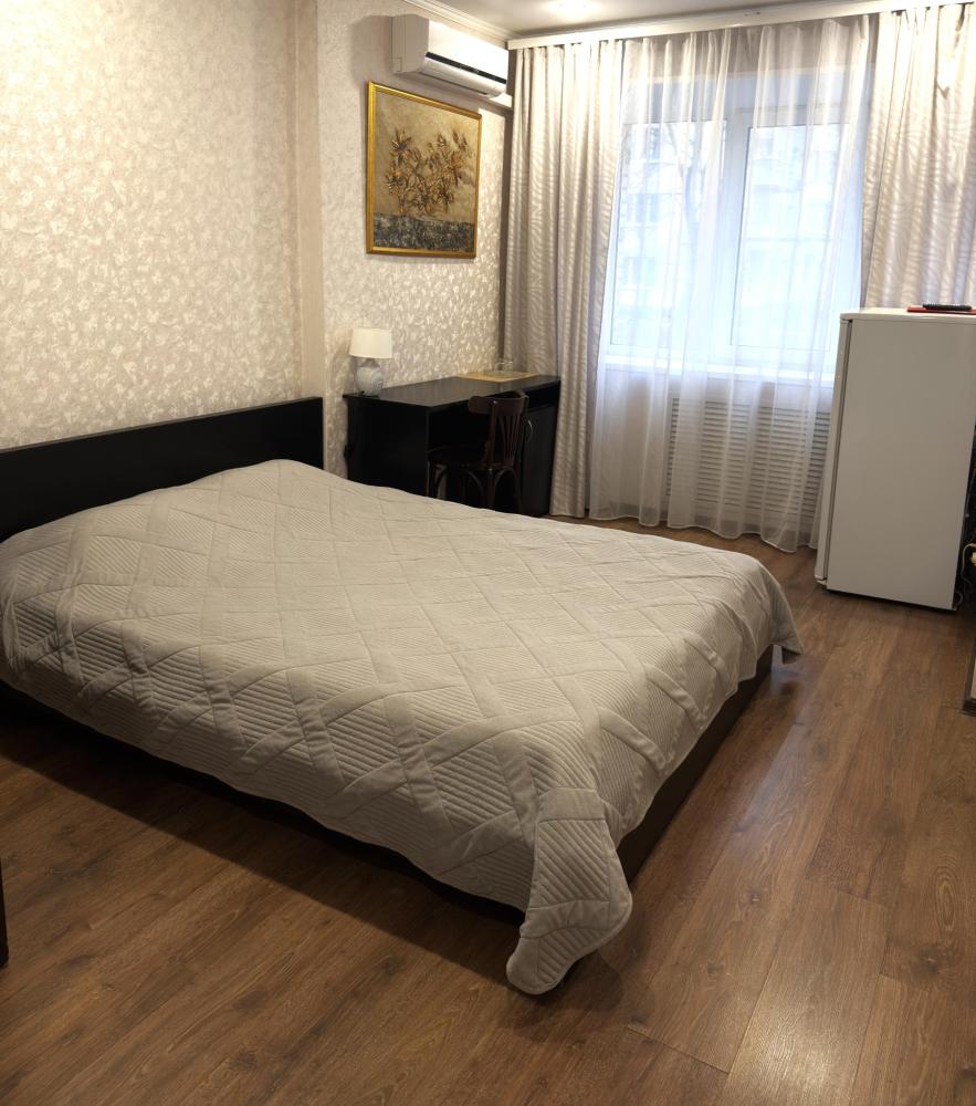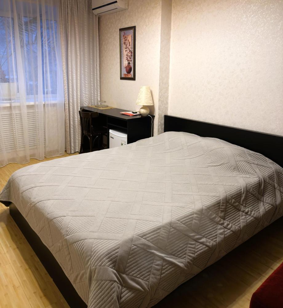 В номере: двуспальная кровать, стол, стулья, шкаф, прикроватные тумбочки, кондиционер, тумбочка, телевизор, холодильник. В ванной: туалет, раковина, душ, душевая кабина.