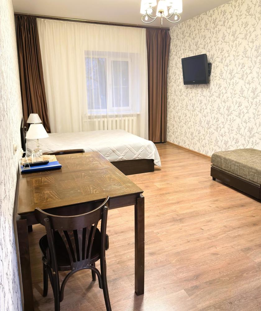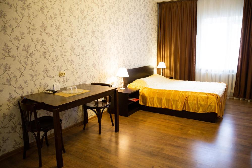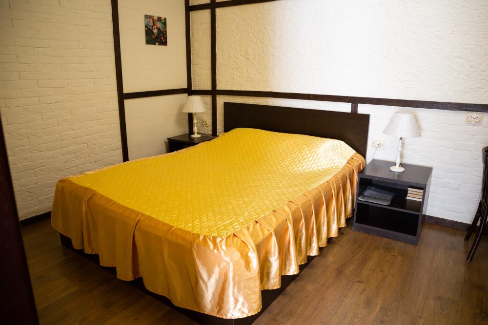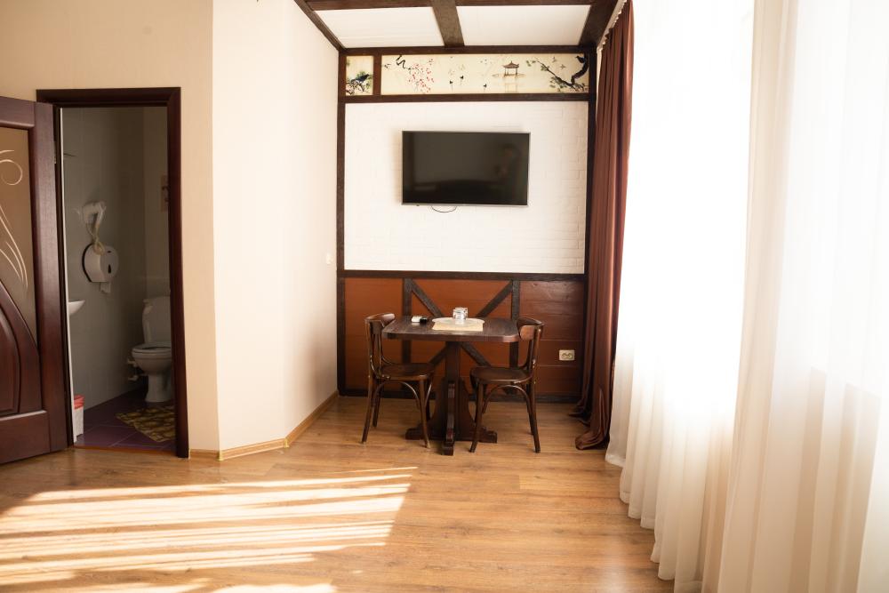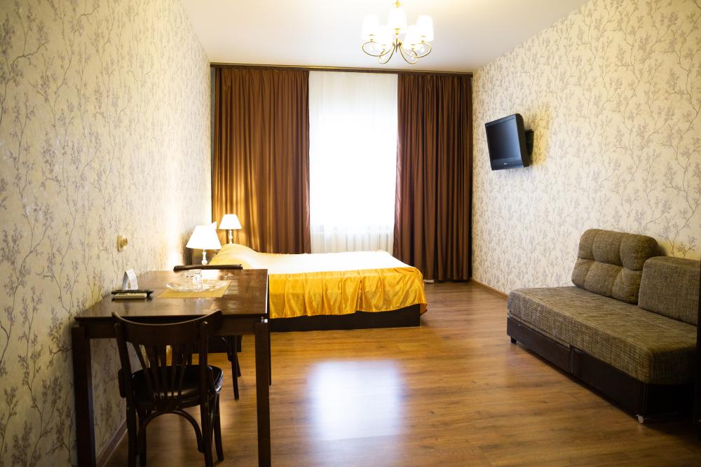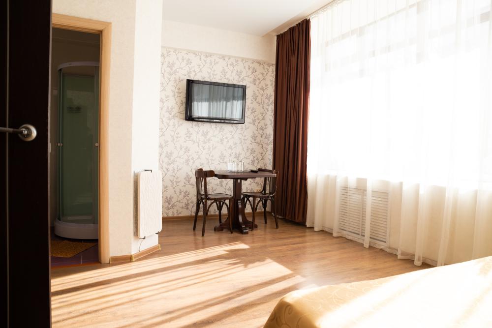 В номере: две односпальные кровати или одна двуспальная, прикроватные тумбочки, холодильник, стол, стул, шкаф, телевизор, кондиционер. В ванной: душевая кабина, туалет, раковина.