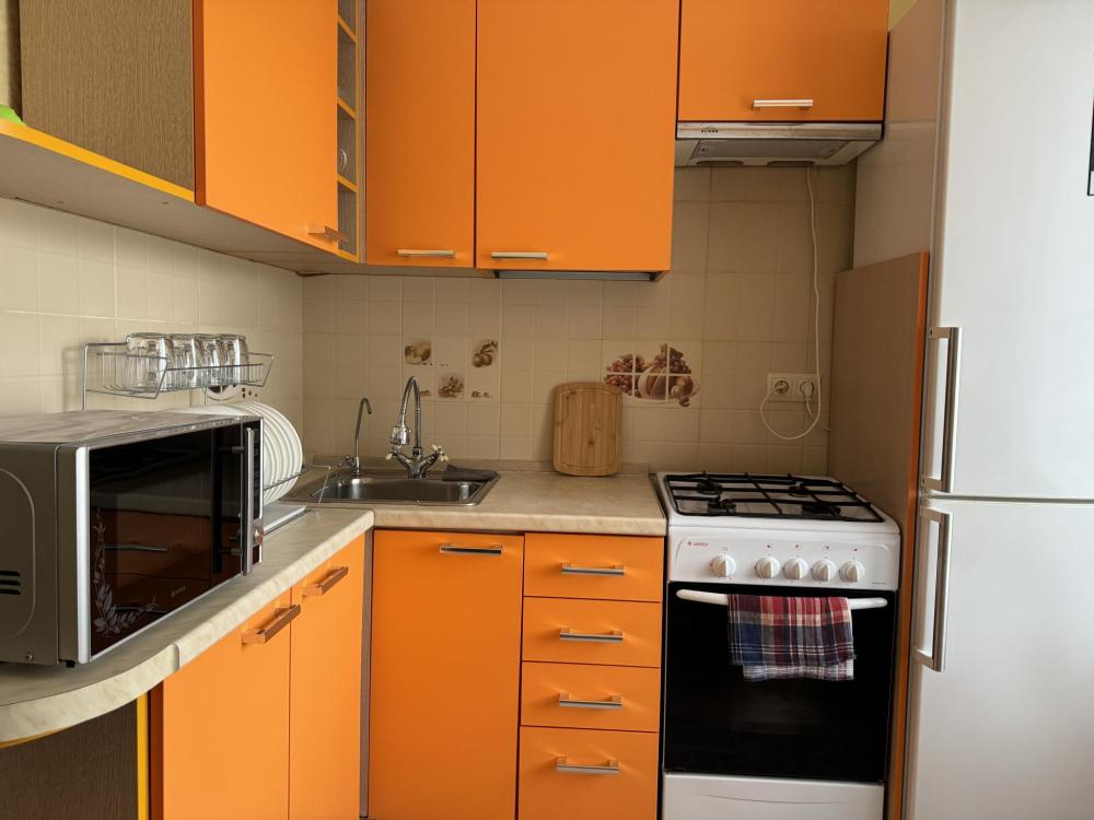 Кухня: Обеденный стол, полноразмерный холодильник , плита с духовкой , микроволновка, вытяжка, вся необходимая посуда и столовые приборы .