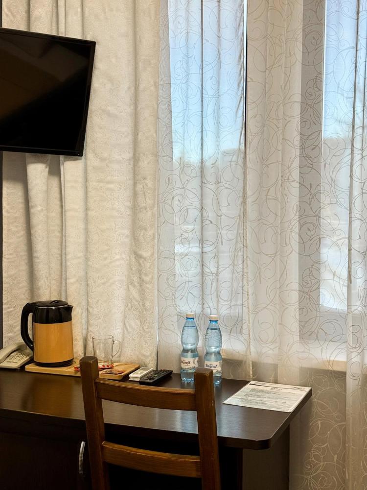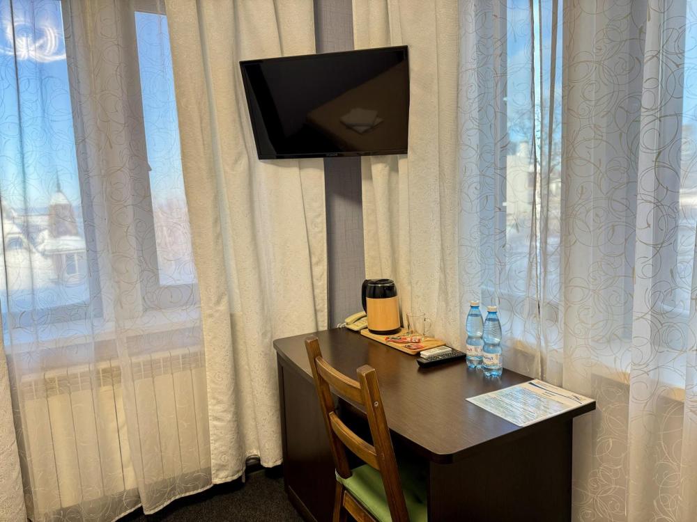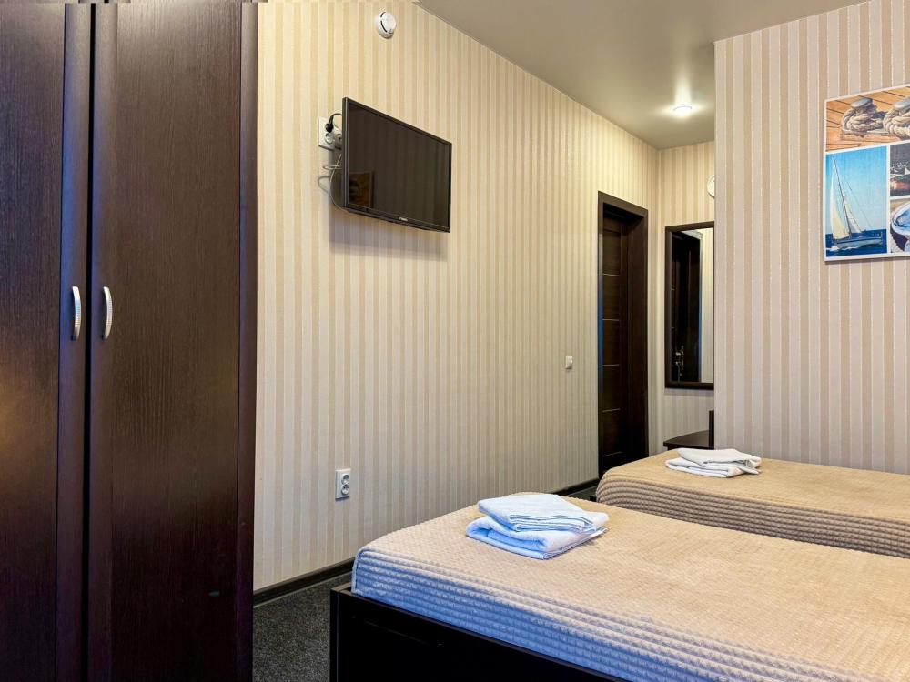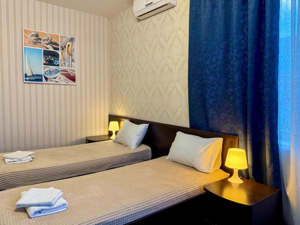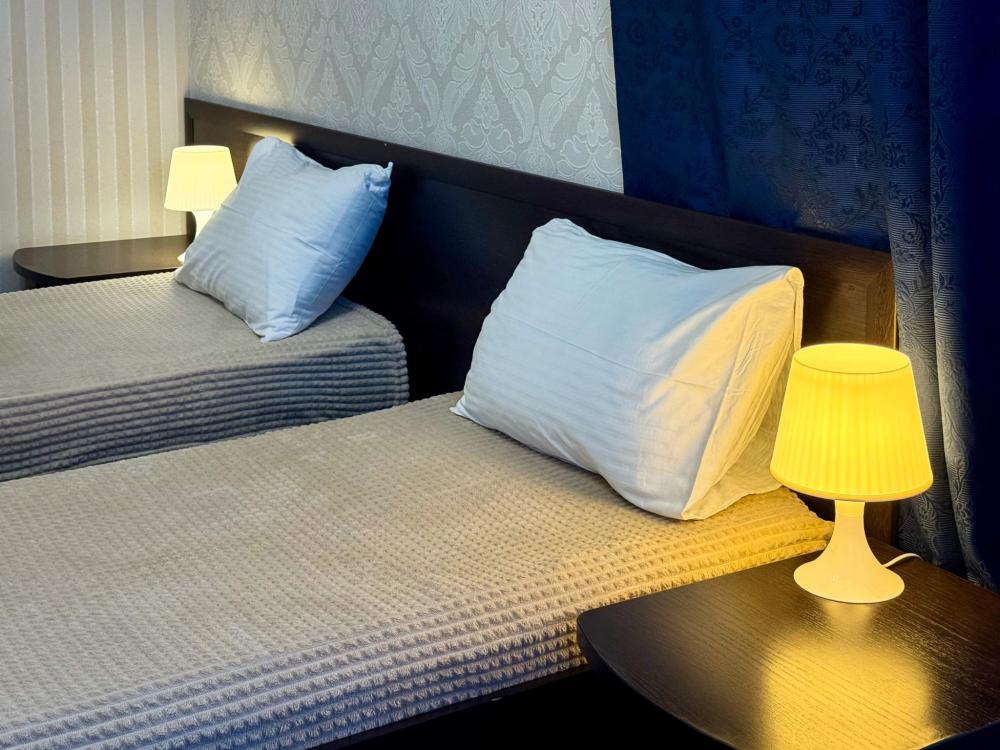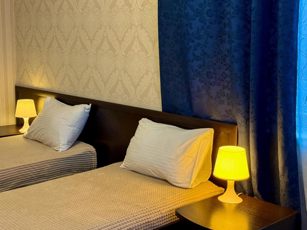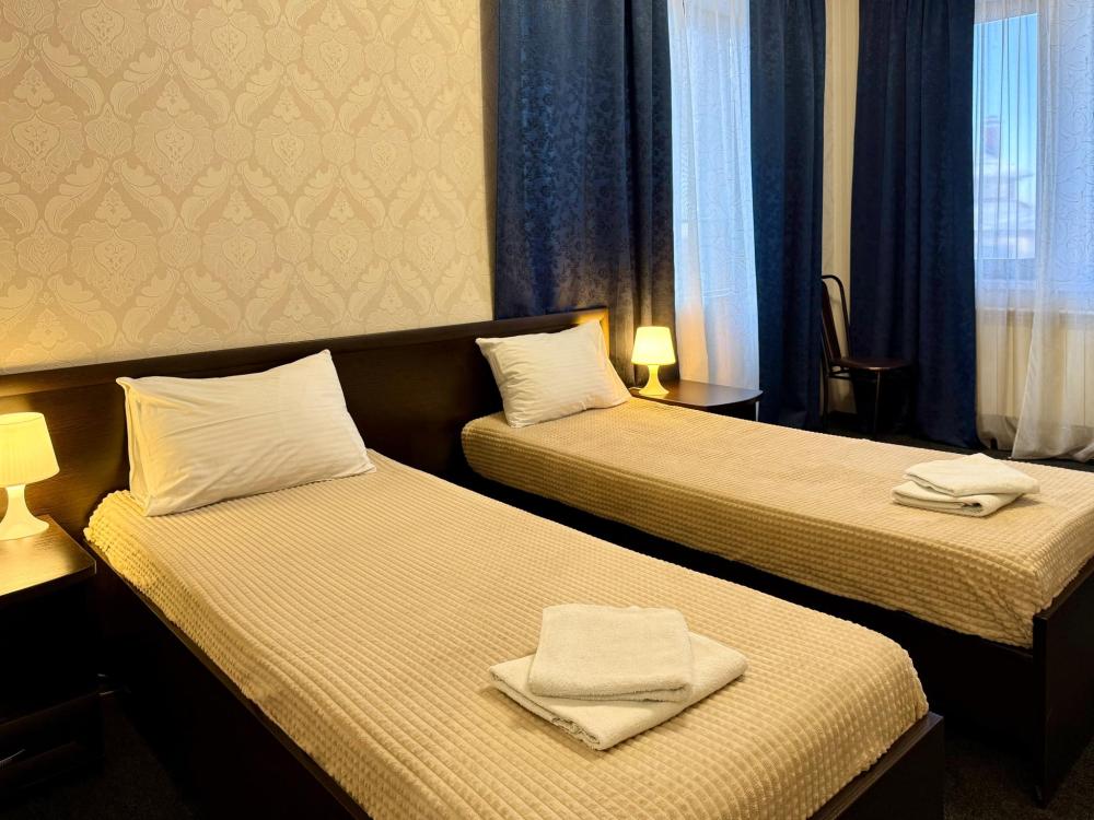 Комфортабельный, светлый номер площадью 17,5м² с двумя односпальными кроватями (90* 200) В номере есть все необходимое для проживания и отдыха: телевизор со спутниковым TV, кондиционер, рабочее место, шкаф, телефон, интернет, фен, душ, зеркала, предметы первой необходимости ( гель для душа, шампунь, тапочки). Туалетная комната с с душевой кабиной.