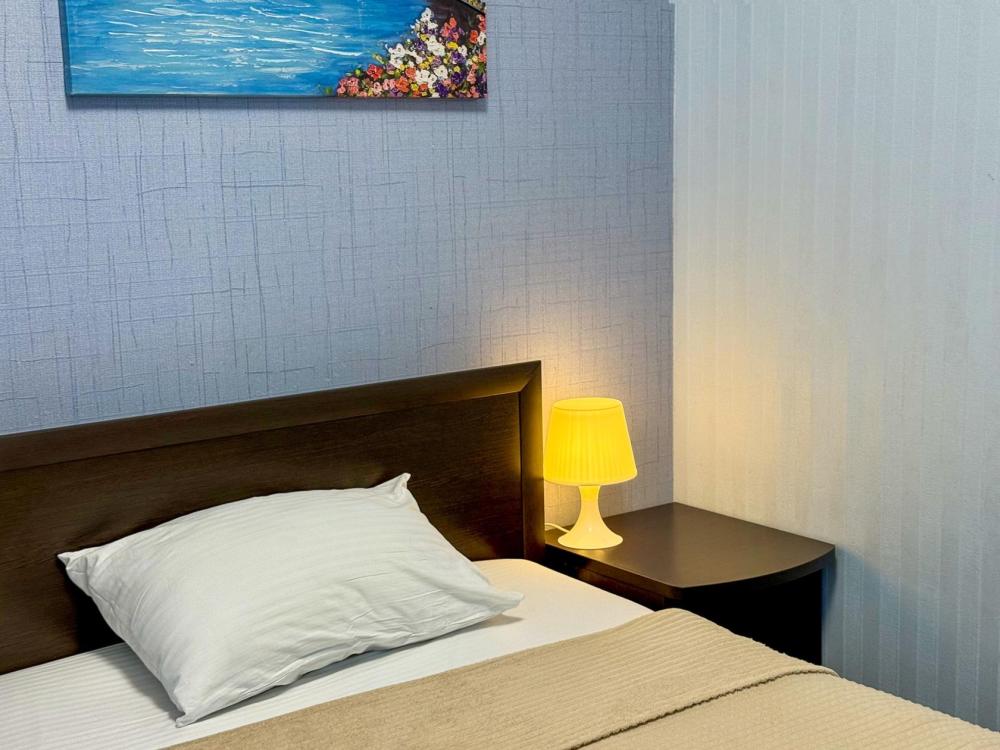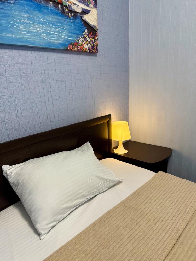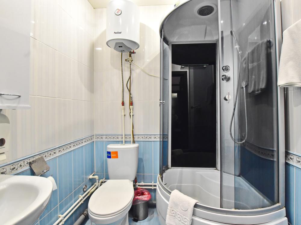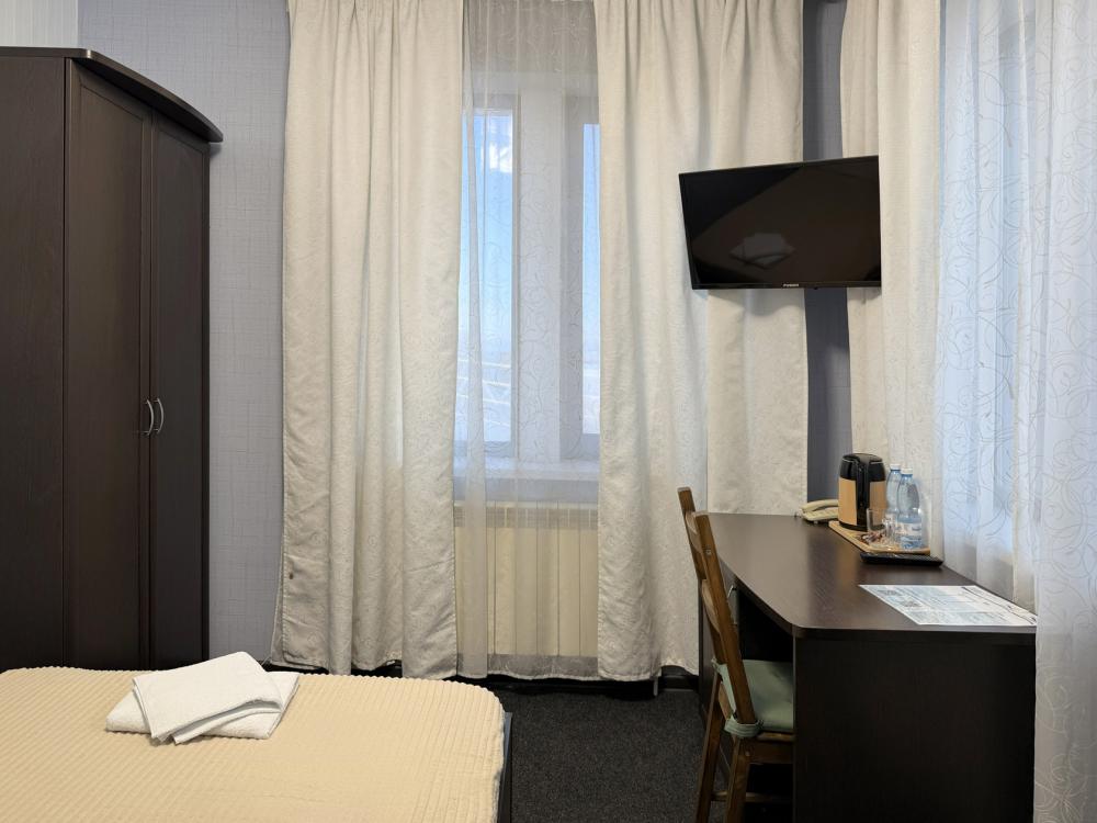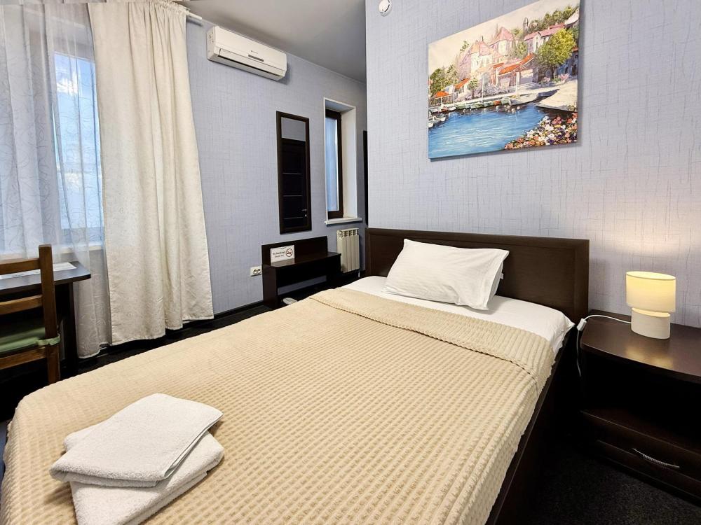Уютный однокомнатный номер площадью 15 м² с кондиционером. Номер содержит все необходимое для комфортного проживания: одна 1,5 спальная кровать ( 120*200), рабочее место, ЖК телевизор со спутниковым TV, телефон, интернет, фен, душ, зеркала, предметы первой необходимости ( гель для душа, шампунь, тапочки). В номере туалетная комната с с душевой кабиной.