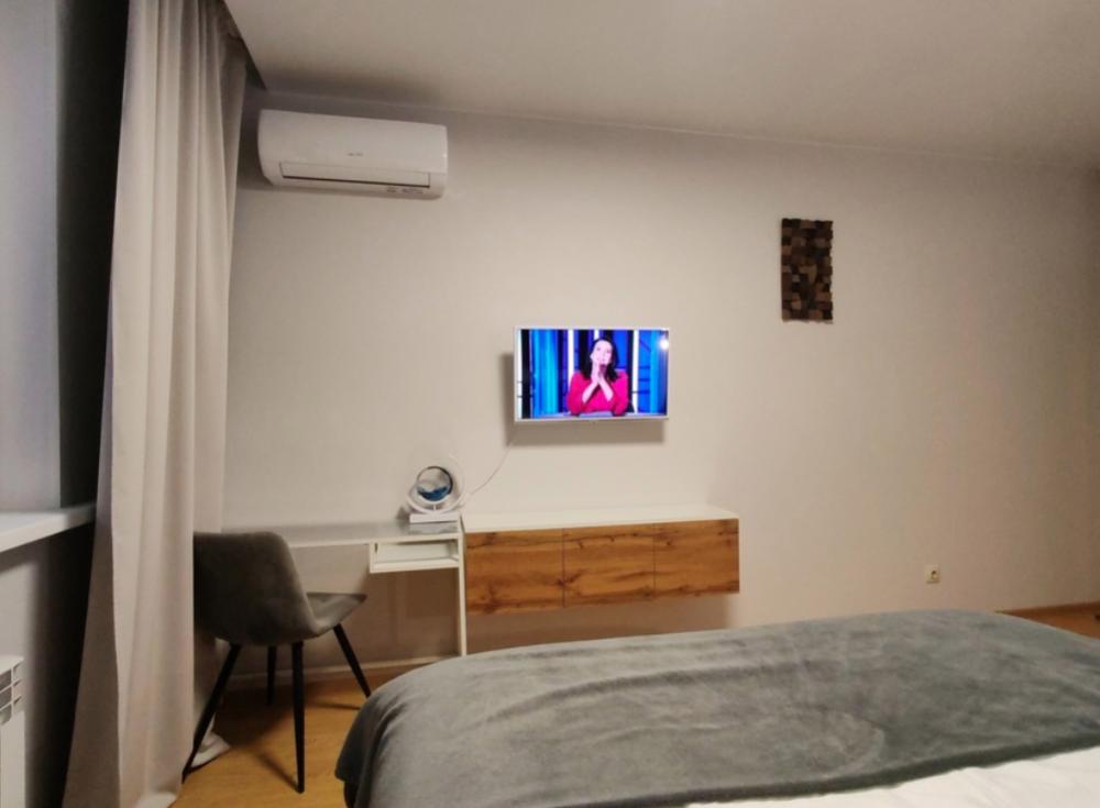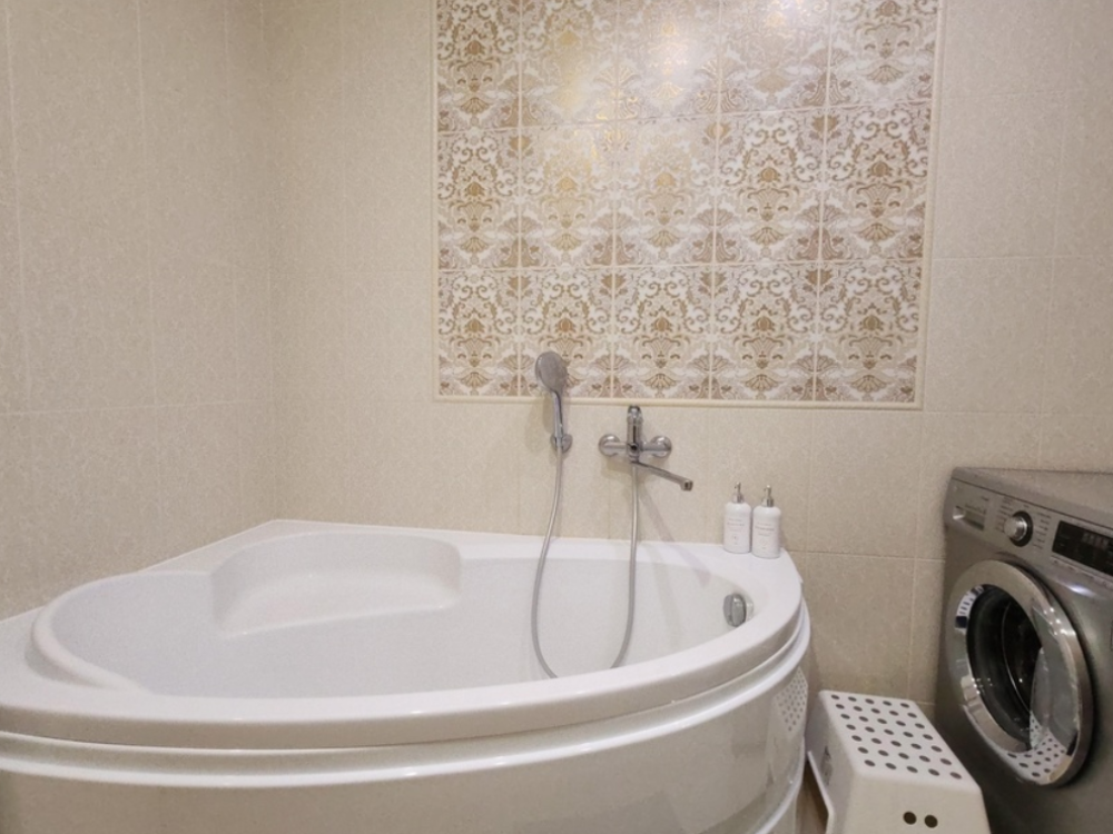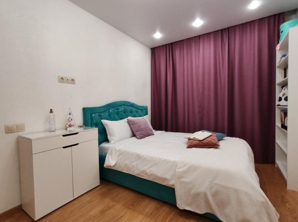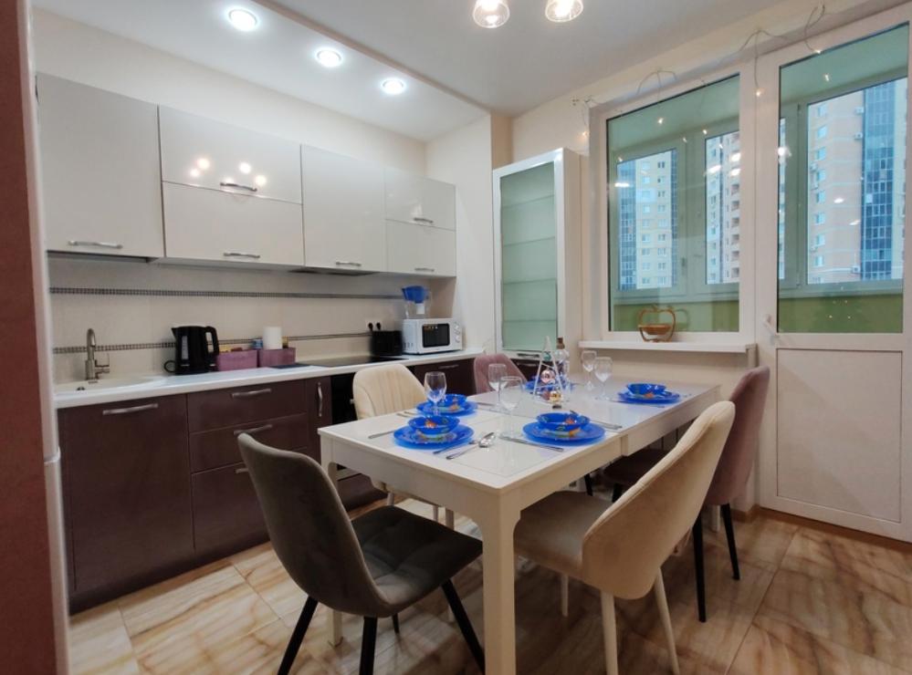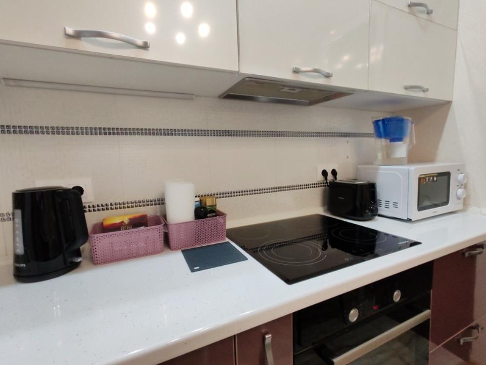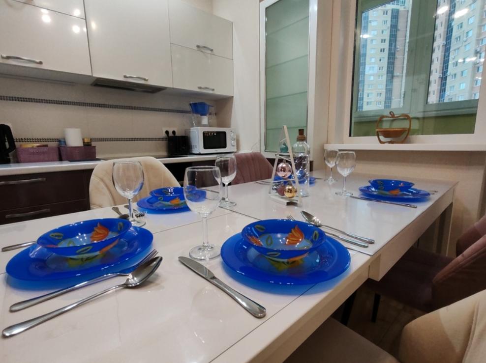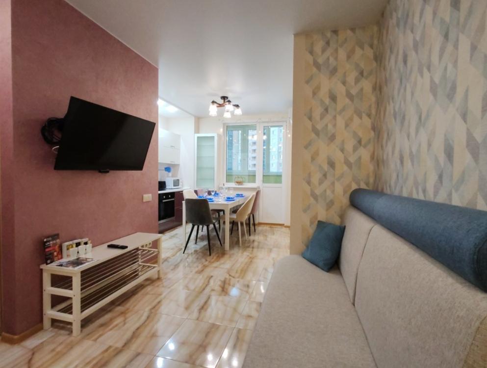В апартаментах есть всё, что нужно для комфортного отдыха. Спальных мест 6: две двуспальные кровати и 1 двуспальный диван. В квартире гостей ожидает быстрый Wi-Fi с скоростью 100 Мбит/с, SMART-TV в гостиной и спальне, а также современная бытовая техника, включая плиту, духовку, микроволновку, холодильник, чайник, тостер, утюг, фен, стиральную машину, кондиционеры и водонагреватель. В распоряжении также есть шторы blackout, постельное бельё премиум-класса, полотенца, средства гигиены, посуда, чай, кофе, сахар и приправы. Для детей подготовлены раскраски, книги, карандаши и игровые принадлежности, а в квартире организована комфортная рабочая зона и просторные шкафы для хранения.