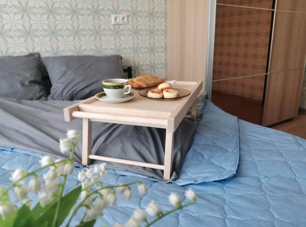 В апартаментах предусмотрено 4 спальных места — двуспальная кровать и двуспальный диван. Для удобства гостей доступны мультимедиа: Wi-Fi со скоростью 100 Мбит/с и SMART-TV. В наличии необходимая бытовая техника: плита, утюг, фен, стиральная и посудомоечная машины, кондиционер, водонагреватель и вытяжка. Дополнительно предоставляются постельное бельё, полотенца, средства гигиены, посуда, чай, кофе, сахар, приправы и подсолнечное масло. Дизайнерский ремонт создаёт расслабляющую атмосферу и способствует хорошему настроению.