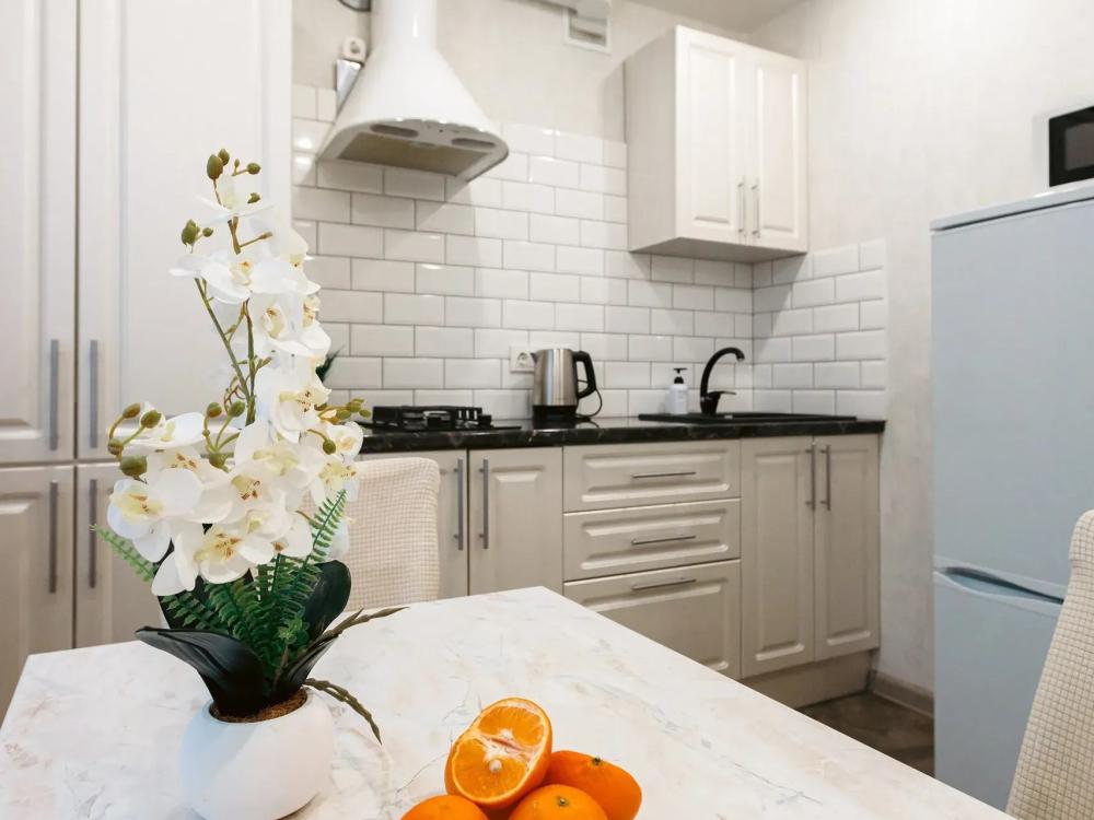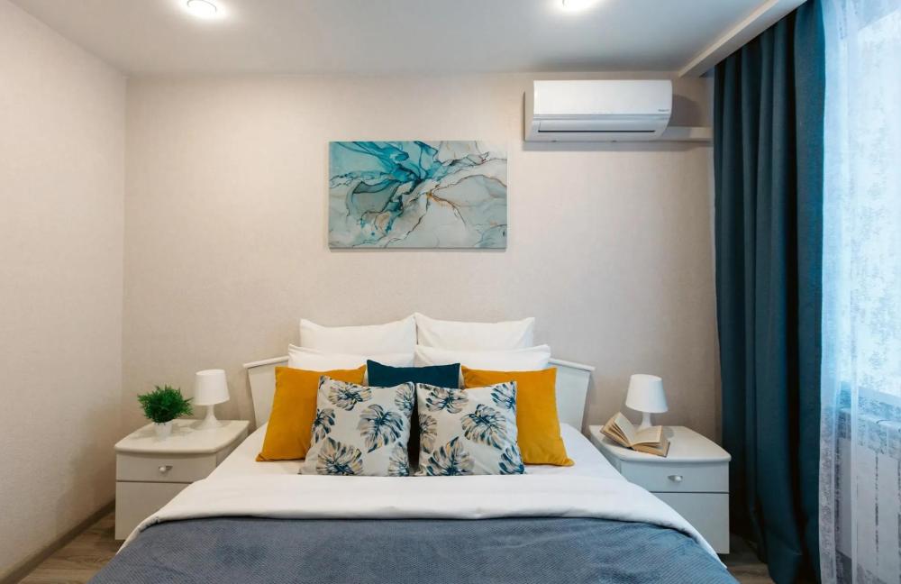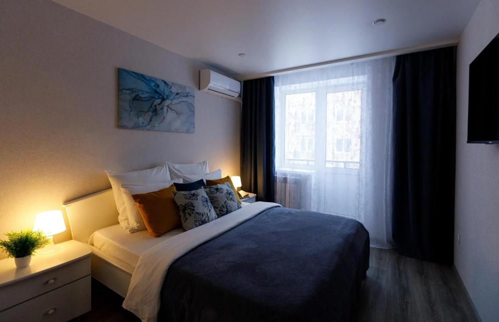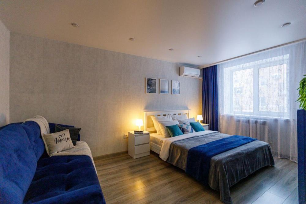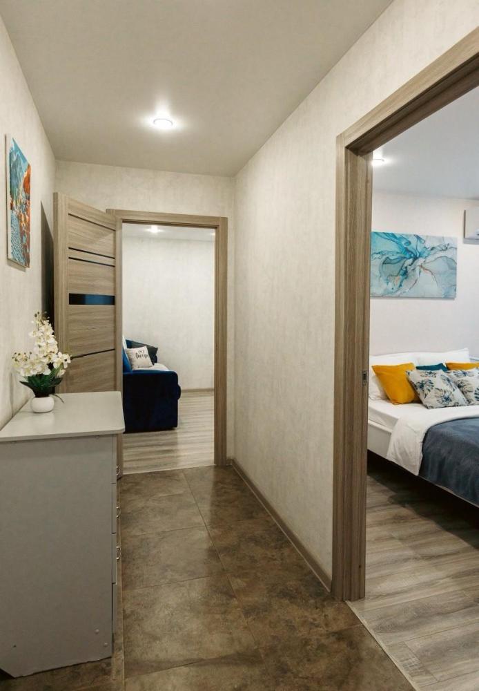 В апартаментах возможно размещение 6 человек. Спальные места: 2 двуспальные кровати, раскладной диван. Кухня оборудована необходимой посудой и техникой: плита, микроволновая печь, чайник, холодильник. К услугам гостей также телевизор, кондиционер, стиральная машина, фен, постельное бельё, полотенца.