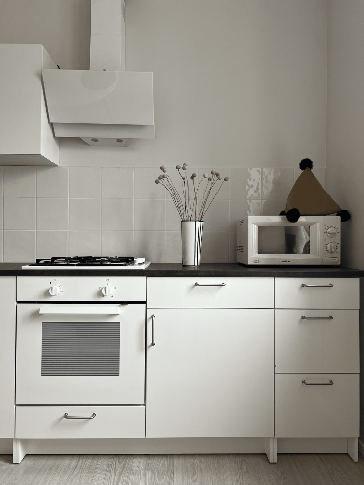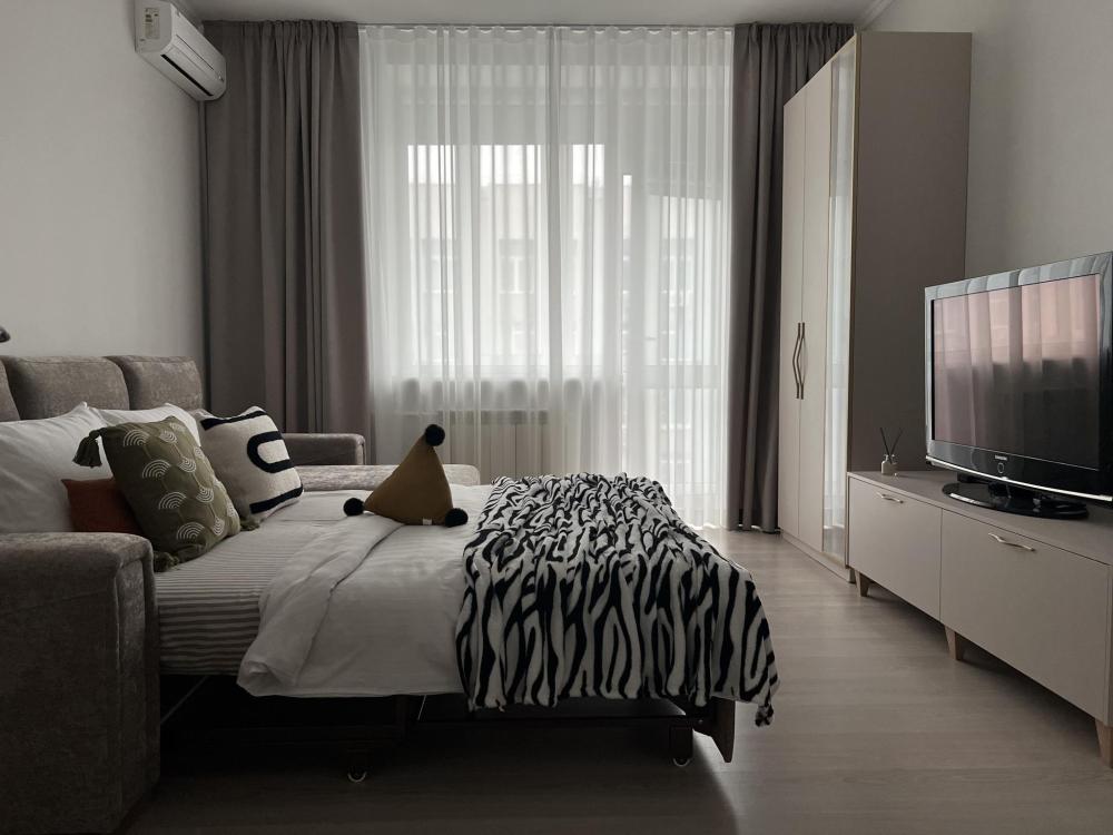 В квартире есть все необходимое для комфорта: - Комфортный раскладной диван 160*180. - Кондиционер. - Кухня (холодильник, духовой шкаф, плита, микроволновая печь, чайник, посуда для приготовления еды, чай, кофе, сахар, соль, масло). - Тv и высокоскоростной wi-fi. - Совмещенный санузел с ванной и средства личной гигиены.