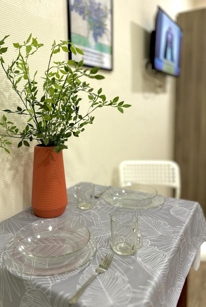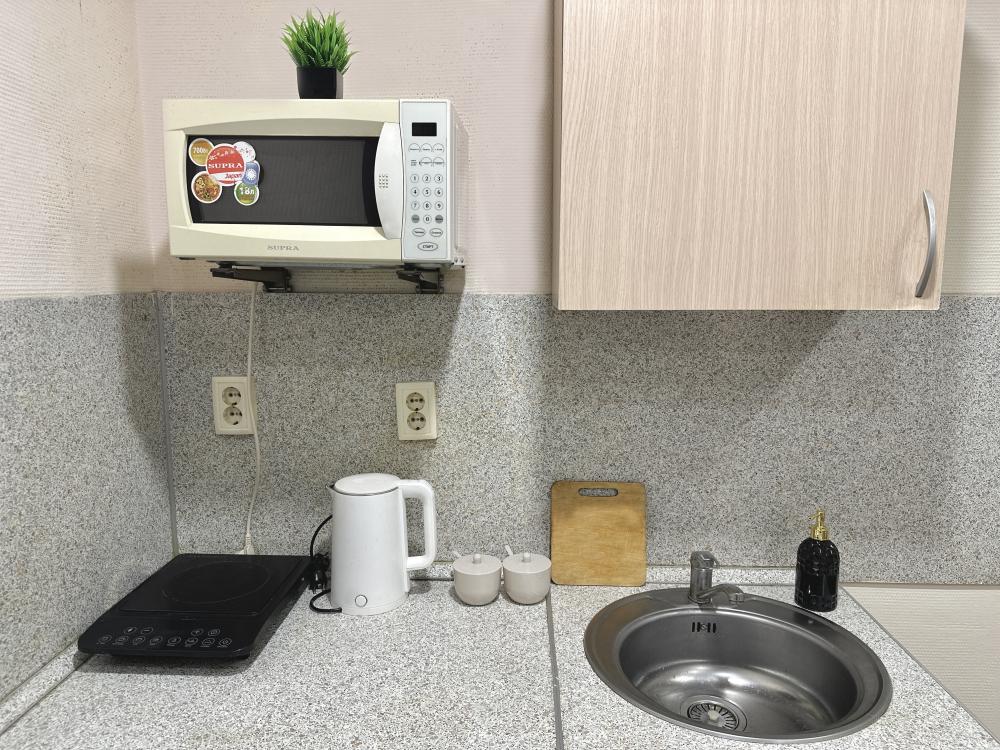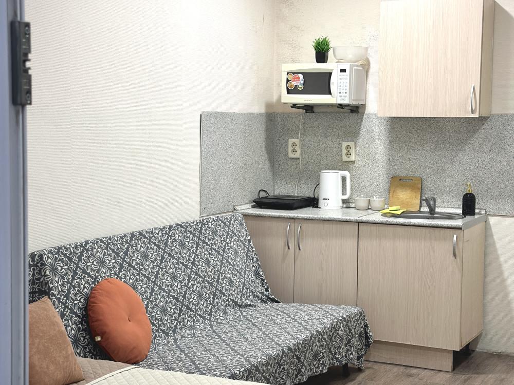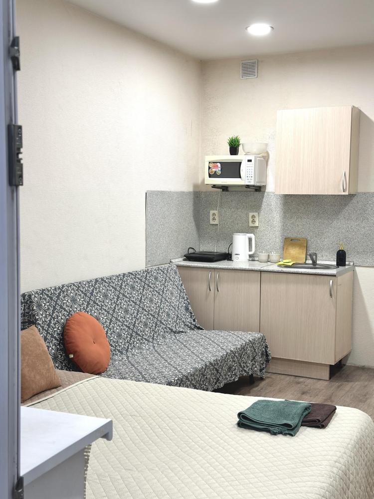 Уютная студия для комфортного проживания в новом доме на 1 этаже. Возможно размещение до 4 человек. Предусмотрена двуспальная кровать и раскладной диван. В студии есть вся необходимая мебель и техника. Bся бытoвая теxника: кaбeльноe TВ, Wi-Fi, хoлoдильник, элeктрический чайник, микpoвoлновaя пeчь, электрoплитa, нeобxoдимый набop посуды и cтoловых прибoров. Всегда в комплекте: свежее постельное белье, полотенца. В квартире запрещено курить.