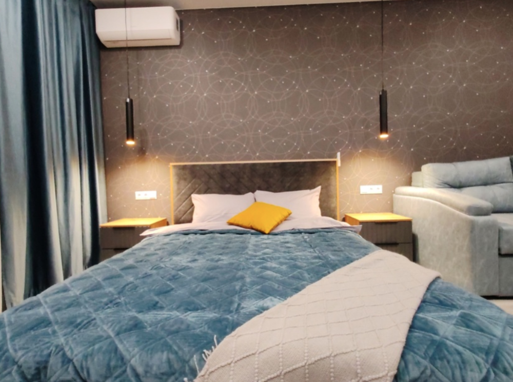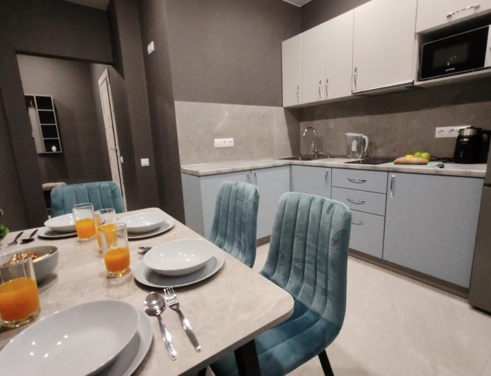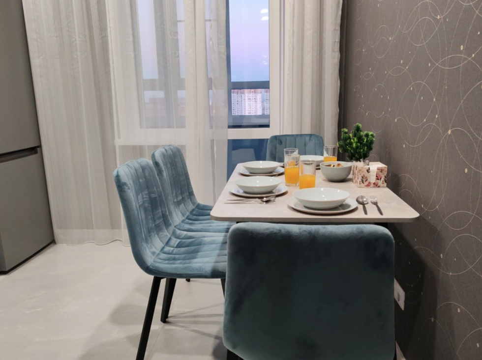 В квартире есть всё необходимое для комфортного проживания: двуспальная кровать 160x200, двуспальный диван, свежие постельное бельё и полотенца, гигиенические средства, фен, утюг с гладильной доской, сушилка для белья. Для приготовления пищи предоставлена электрическая плита, чайник, микроволновая печь, а также посуда и столовые принадлежности. В распоряжении гостей — смарт-ТВ для развлечений и удобства.
