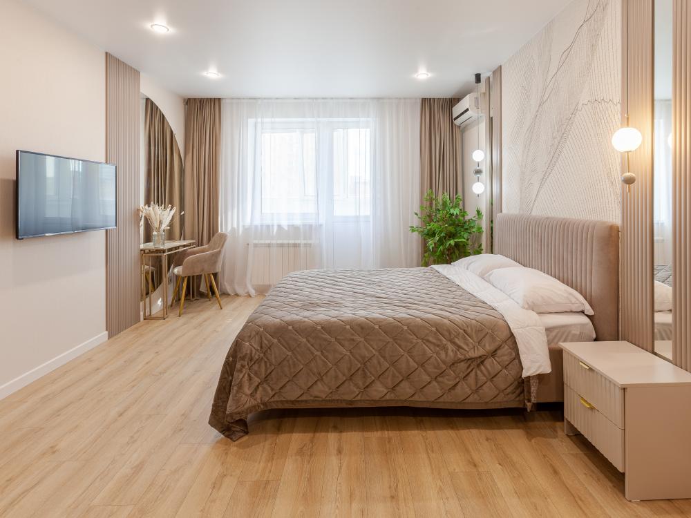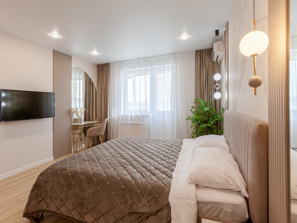Просторная и светлая однокомнатная квартира с хорошим ремонтом с вместимостью до 4 гостей. Квартира находится в элитном доме в районе "Постников Овраг". В квартире есть все для комфортного проживания: двуспальная кровать, диван, ЖК – телевизор, Wi-Fi, холодильник, стиральная машинка, микроволновка, чайник, кондиционер, утюг, фен. Хорошая транспортной развязка. Рядом с домом: студии красоты, супермаркеты, школы, кафе, рестораны. В 2 км расположен городской пляж р. Волга (15 мин пешком). "Загородный парк". Во дворе находится детская площадка, имеются парковочные места, территория охраняемая. При заселении требуется паспорт. Квартира не сдается под различные шумные мероприятия, курить в квартире запрещено.