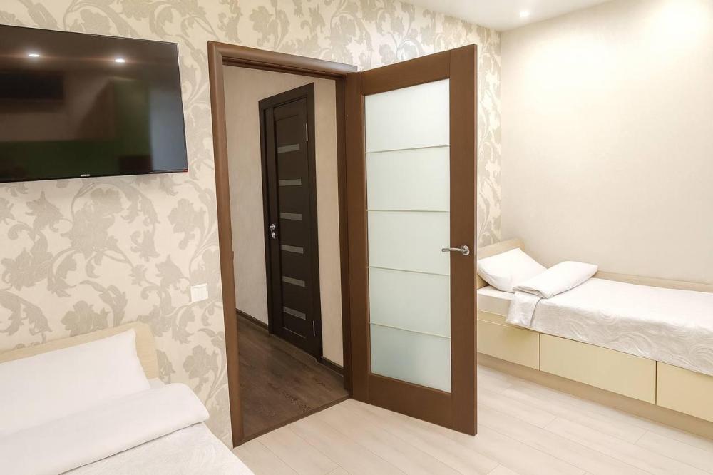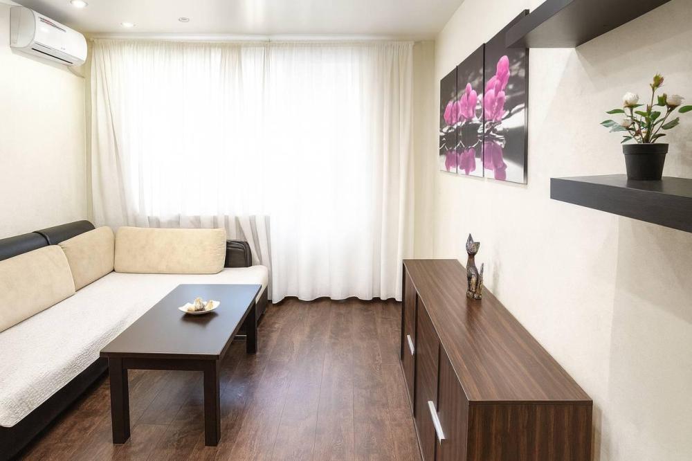 Комфортное размещение: для 4 человек. Широкий двуспальный диван и две одноместные кровати. В квартире : кондиционер, утюг, гладильная доска, сушилка для белья; холодильник; газовая плита, электрический чайник; СВЧ-печь; ванная; набор Посуды: тарелки, стаканы, кастрюли, сковорода; столовые приборы; телевизор, стиральная машина; чистое постельное белье; полотенца; фен.