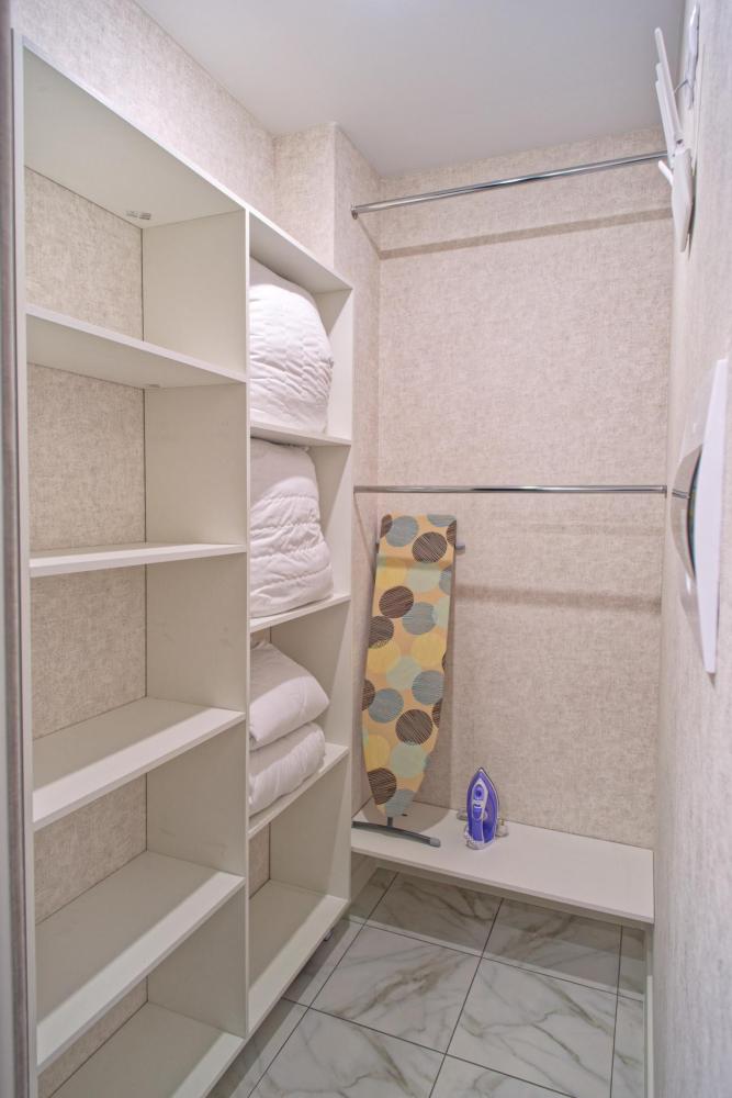 Все необходимое для жизни: мощный кондиционер, стиральная машина, утюг, гладильная доска.