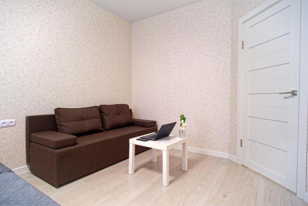 Просторная зона отдыха с удобным двуспальным диваном, Smart-TV и быстрым Wi-Fi для работы и развлечений.