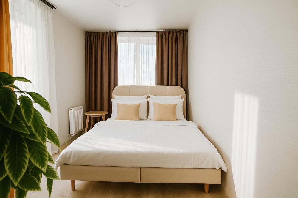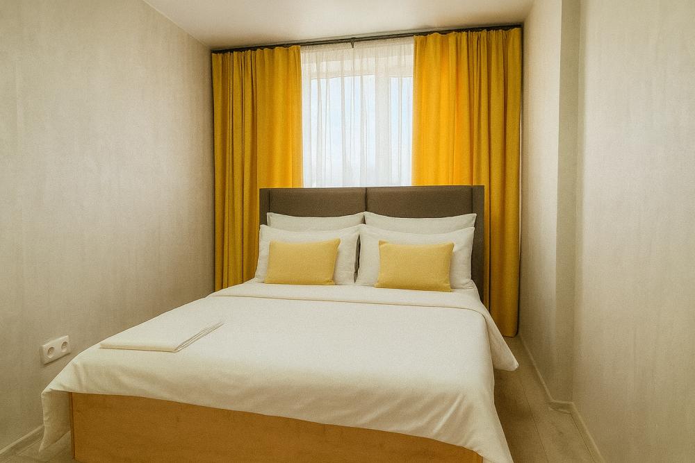 Видовая, уютная 2-комнатная квартира с новым ремонтом. Спальных мест 4: двуспальная кровать с ортопедическим матрасом + раскладывающийся диван. Есть всё для комфортного проживания: бытовая техника, плита, посуда, необходимая для приготовления и принятия пищи, стиральная машина, телевизор, фен, Wi-Fi, кабельное TV, чистое постельное белье и полотенца.