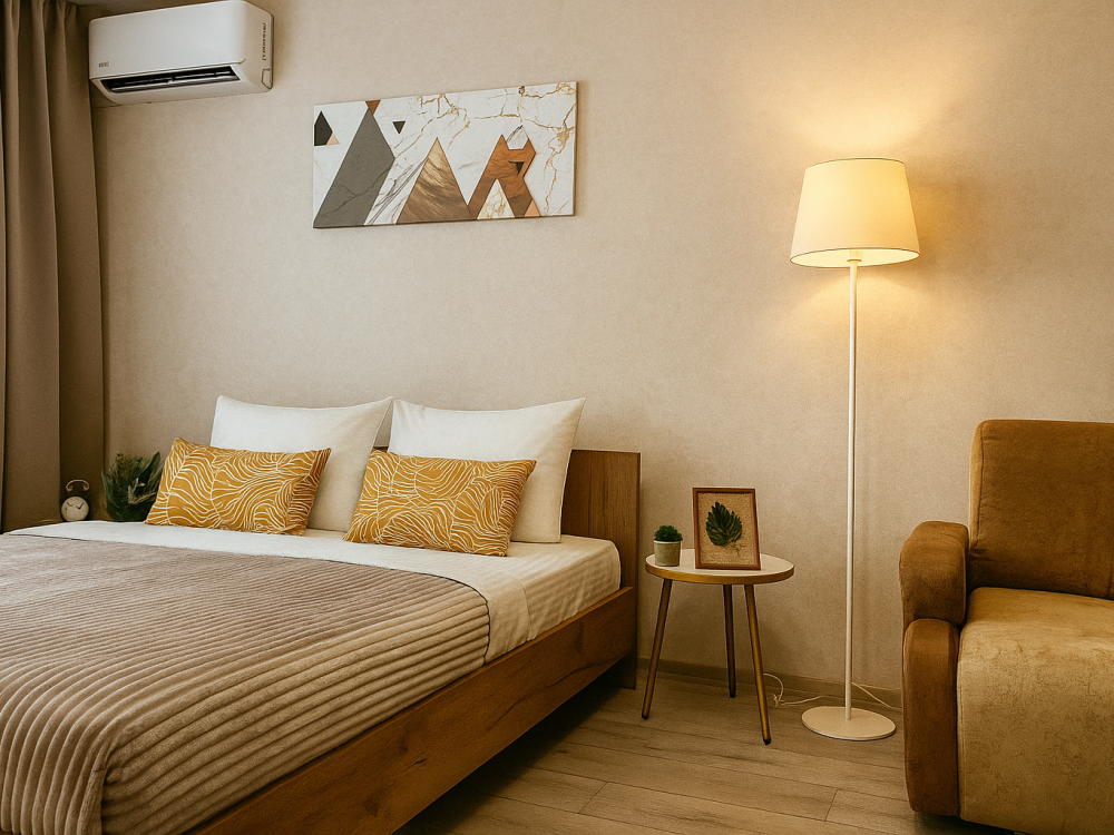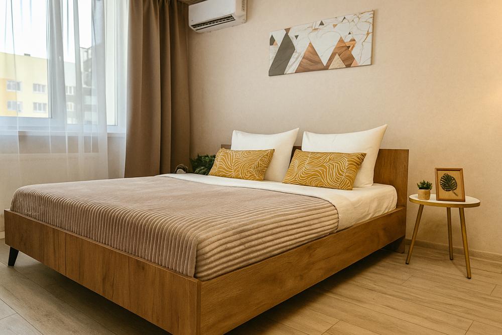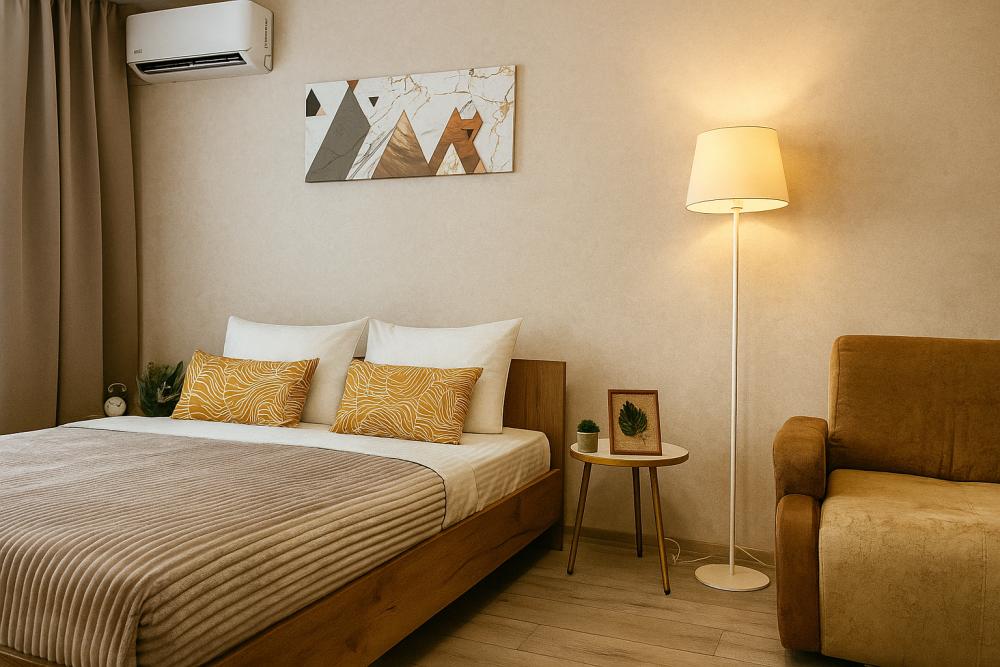 Видовая, просторная 1-ком квартира на 23 этаже с новым ремонтом, в новом ЖК Сокол. Спальных мест - 2+2 (двуспальная кровать с ортопедическим матрасом + раскладывающийся диван.) ✅ Что доступно гостю Квартира полностью в распоряжении гостей, есть все необходимое для комфортного проживания. Бытовая техника и оснащение: ? плита, духовой шкаф, вытяжка, микроволновка, холодильник; ? кондиционер, стиральная машина, водонагреватель; ? посуда, необходимая для приготовления и принятия пищи; ? утюг, гладильная доска, сушилка для белья, фен; ? телевизор, кабельное TV, бесплатный Wi-Fi; ? чистое постельное белье и полотенца; ? туалетные принадлежности, зубные наборы, тапочки; ? Очень чисто и уютно. После каждого гостя проводим генеральную уборку. ✅ УСЛУГИ ? По запросу предоставляем детский стульчик и ванночку. ✅ Развитая инфраструктура. В пешей доступности: Медгард СамГМУ, ИДК, Мать и дитя, Детская больница им. Ивановой, Самарский аэрокосмический университет, сквер, Мягкофф, ТЦ Космопорт, Ашан, Центральный автовокзал, женские и мужские салоны красоты, банки, банкоматы, супермаркеты, аптеки, ателье. Во дворе дома расположена большая детская площадка, территория огорожена, двор без машин. ✅ ЗАСЕЛЕНИЕ ⏱ Время заселения после 15:00 * ⏱ Время выселения до 12:00 ** **Ранний заезд и поздний выезд возможен по предварительной договоренности и при наличии такой возможности. ⭕ При заселении подписываем договор аренды, потребуются паспорт. ⭕ Берем залог - возвращаем в день выезда, после проверки квартиры. ⭕ Имеются ограничения в возрасте - заселяем гостей от 21 года. ❗❗ Друзья, будем благодарны Вам за соблюдение правил в квартире: ❌ Использовать только для проживания, запрещаются организации шумных и алкогольных мероприятий. ❌ Просим не ходить в уличной обуви. ❌ В квартире запрещено курить сигареты, электронные девайсы, кальяны. Имеется место для курения в парадной на общем балконе. ❌ Просим Вас соблюдать шумовой режим и воздержаться от прослушивания громкой музыки с 22.00 до 9:00, с 13:00 до 15:00. ❌ Не допускается проживание с животными. Ждем Вас в гости!