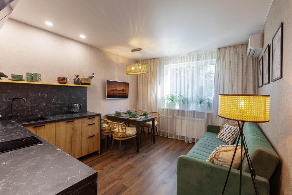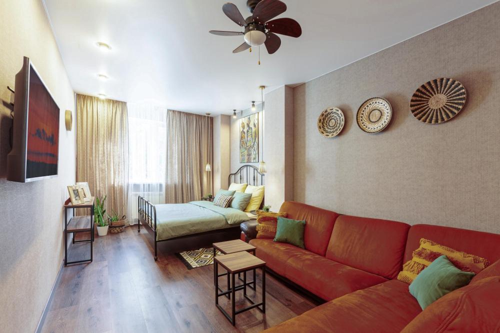 APARTS PRO+ Саванна Комфорта1-комнатная квартира в Октябрьском районе ✨ Встречайте уютную и просторную квартиру площадью 45 м², созданную для вашего комфорта и отдыха!Современный интерьер с африканскими элементами декора дарит особую атмосферу уюта и тепла — здесь хочется задержаться подольше. Идеально подойдёт для: • семейных поездок, • командировок, • романтических выходных или отдыха с друзьями. О квартире: • Просторное размещение до 4 гостей. • Уютная спальня с двуспальной кроватью 160×200. • На кухне — удобный раскладной диван для двоих. • Два телевизора, в том числе SMART-TV с кабельными каналами и быстрым Wi-Fi. • Полностью оборудованная кухня: посудомоечная машина, плита, микроволновая печь, холодильник, чайник и полный набор посуды. • Стиральная машина, утюг, гладильная доска, фен, сушилка. • Кондиционер — прохлада летом, своё отопление в доме — горячая вода всегда есть! • Чистое постельное бельё, полотенца, тапочки, туалетные принадлежности. О доме и районе: • Октябрьский район — удобное расположение в городе. • Во дворе детская площадка. • Есть общественная парковка. Услуги и преимущества: • Всегда свежо и чисто — после каждого гостя проводится уборка. • По запросу: детский стульчик и ванночка. ⏱ Заселение и правила: • Заезд после 15:00, выезд до 12:00. • Удобное дистанционное заселение по электронному замку. • Залог — 4000 ₽ (возвращаем в день выезда после проверки). • Курение запрещено. • Не для вечеринок. ✨ Забронируйте Саванну Комфорта и подарите себе приятный отдых в уютной атмосфере!