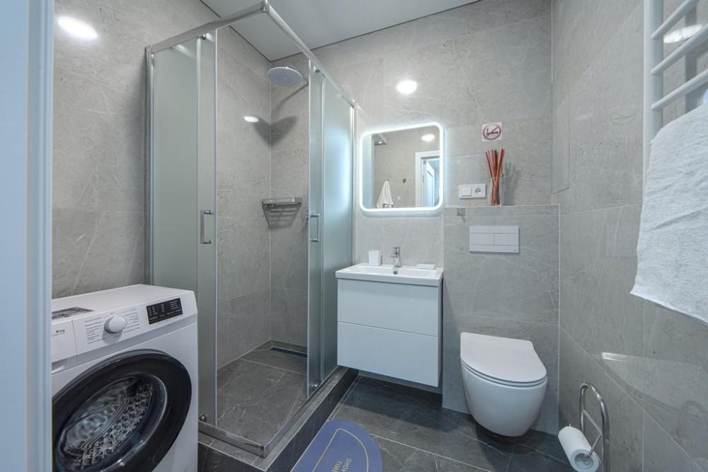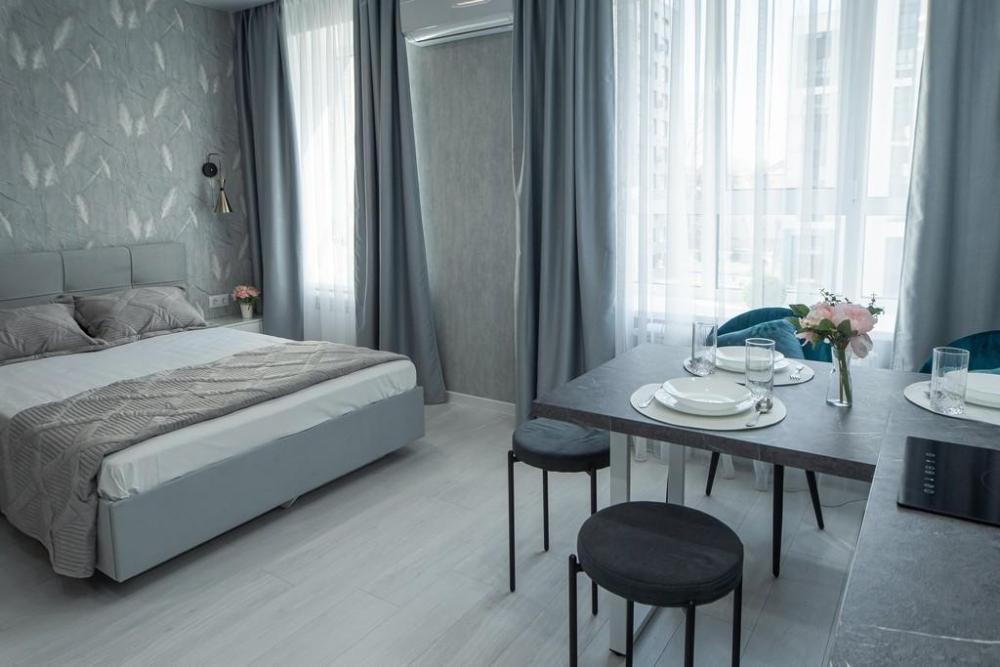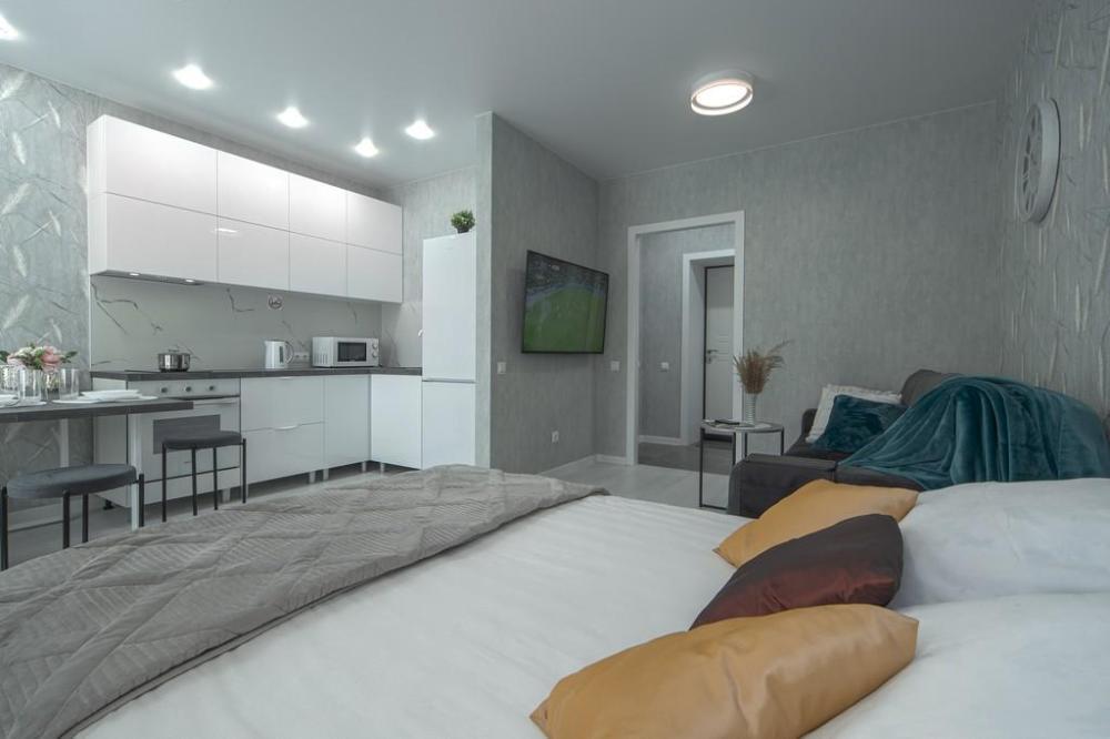 В КВАРТИРЕ ИМЕЮТСЯ: Кондиционер; ЖК-телевизор с подключенным кабельным ТВ; Комплект хлопкового постельного белья и полотенца. Базовый комплект постельных принадлежностей предоставляется бесплатно (в 1-комнатной квартире — на одну двуспальную кровать). Если вам понадобятся дополнительные комплекты, сообщите заранее, пожалуйста (1 комплект — 300 ₽).; Бытовая техника (стиральная машинка, СВЧ-печь, холодильник, плита, чайник, утюг, фен); Средства для личной гигиены (шампунь, гель для душа, мыло); Посуда для приготовления пищи; Гладильная доска и сушилка. Цена зависит от количества проживающих, срока проживания, а также дня недели бронирования.