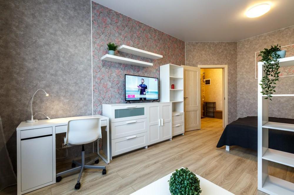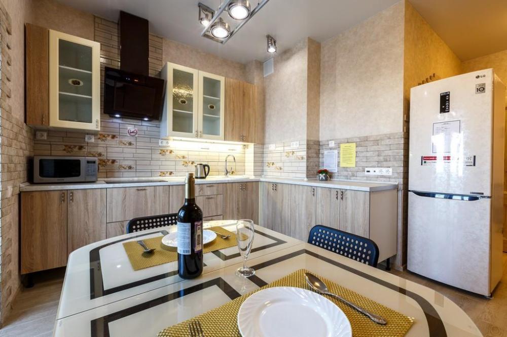 В КВАРТИРЕ ИМЕЮТСЯ: Кондиционер; ЖК-телевизор с подключенным кабельным ТВ; Комплект хлопкового постельного белья и полотенца. Базовый комплект постельных принадлежностей предоставляется бесплатно (в 1-комнатной квартире — на одну двуспальную кровать). Если вам понадобятся дополнительные комплекты, сообщите заранее, пожалуйста (1 комплект — 300 ₽).; Бытовая техника (стиральная машинка, СВЧ-печь, холодильник, плита, чайник, утюг, фен); Средства для личной гигиены (шампунь, гель для душа, мыло); Посуда для приготовления пищи; Гладильная доска и сушилка.
