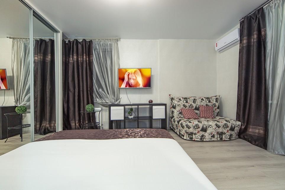 ФОТОГРАФИИ КВАРТИРЫ НА 100% СООТВЕТСТВУЮТ ДЕЙСТВИТЕЛЬНОСТИ. НАШИ ПРЕИМУЩЕСТВА: Полный пакет отчетных документов с подтверждением для бухгалтерии. Бесплатный WiFi в квартире. Работаем 24 часа в сутки – заезд после 15:00 в любое время, выезд до 11:00. Наличный и безналичный расчет. В квартире не курят. Скидки до 25% при длительном проживании. В КВАРТИРЕ ИМЕЮТСЯ: Кондиционер; ЖК-телевизор с подключенным кабельным ТВ; Комплект хлопкового постельного белья и полотенца. Базовый комплект постельных принадлежностей предоставляется бесплатно (в 1-комнатной квартире — на одну двуспальную кровать). Если вам понадобятся дополнительные комплекты, сообщите заранее, пожалуйста (1 комплект — 300 ₽).; Бытовая техника (стиральная машинка, СВЧ-печь, холодильник, плита, чайник, утюг, фен); Средства для личной гигиены (шампунь, гель для душа, мыло); Посуда для приготовления пищи; Гладильная доска и сушилка. Цена зависит от количества проживающих, срока проживания, а также дня недели бронирования.