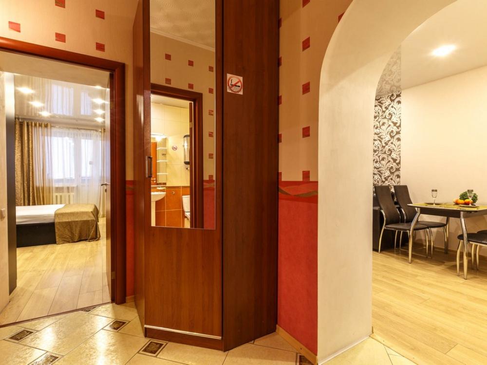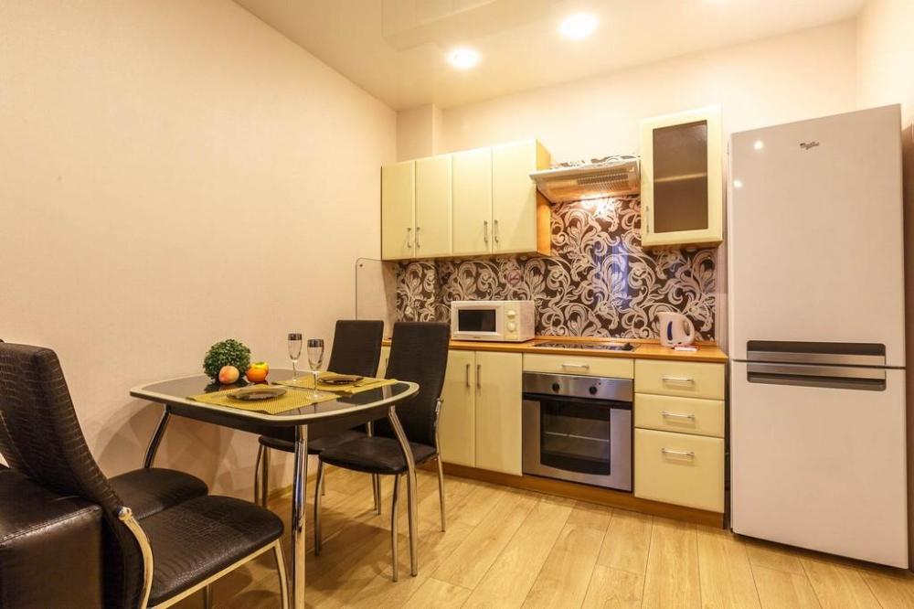В КВАРТИРЕ ИМЕЮТСЯ: Кондиционер; ЖК-телевизор с подключенным кабельным ТВ; Комплект хлопкового постельного белья и полотенца. Базовый комплект постельных принадлежностей предоставляется бесплатно (в 1-комнатной квартире — на одну двуспальную кровать). Если вам понадобятся дополнительные комплекты, сообщите заранее, пожалуйста (1 комплект — 300 ₽).; Бытовая техника (стиральная машинка, СВЧ-печь, холодильник, плита, чайник, утюг, фен); Средства для личной гигиены (шампунь, гель для душа, мыло); Посуда для приготовления пищи; Гладильная доска и сушилка. Цена зависит от количества проживающих, срока проживания, а также дня недели бронирования.