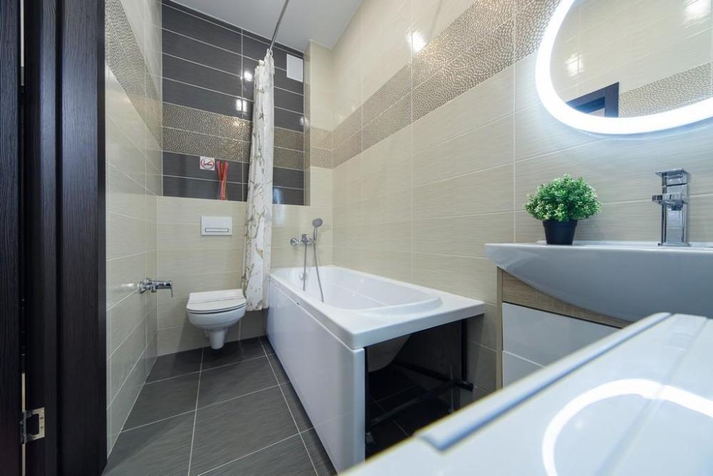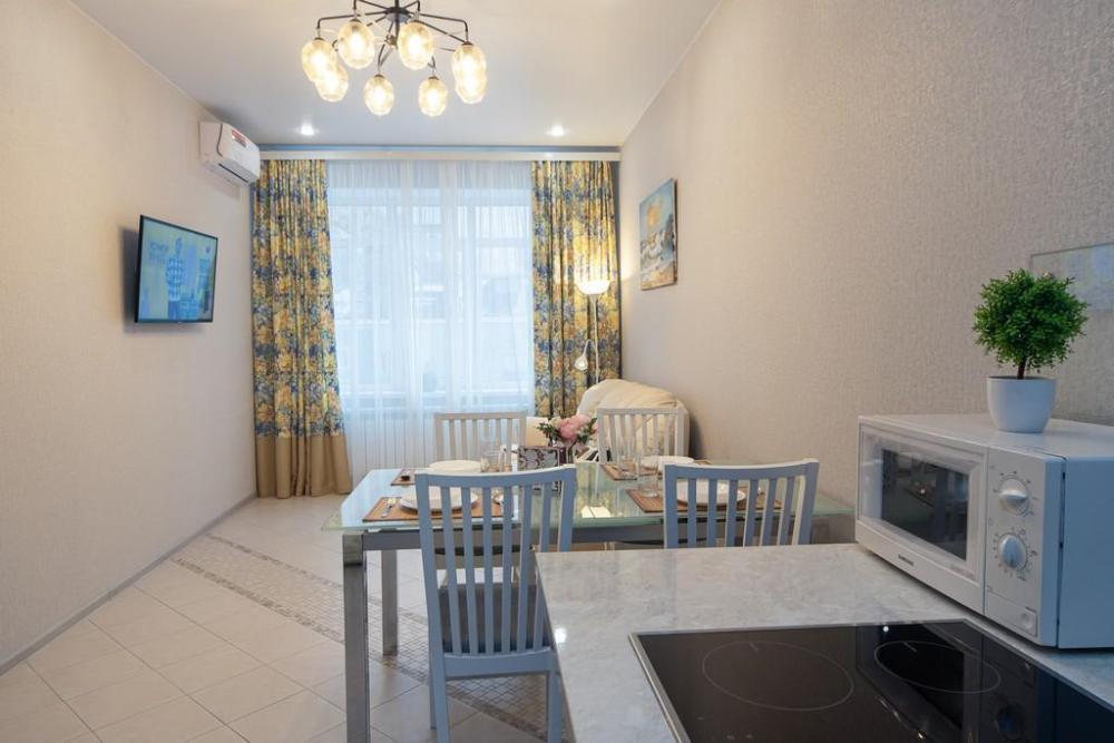 В КВАРТИРЕ ИМЕЮТСЯ: Кондиционер; ЖК-телевизор с подключенным кабельным ТВ; Комплект хлопкового постельного белья и полотенца. Базовый комплект постельных принадлежностей предоставляется бесплатно (в 1-комнатной квартире — на одну двуспальную кровать). Если вам понадобятся дополнительные комплекты, сообщите заранее, пожалуйста (1 комплект — 300 ₽).; Бытовая техника (стиральная машинка, СВЧ-печь, холодильник, плита, чайник, утюг, фен); Средства для личной гигиены (шампунь, гель для душа, мыло); Посуда для приготовления пищи; Гладильная доска и сушилка. Цена зависит от количества проживающих, срока проживания, а также дня недели бронирования.