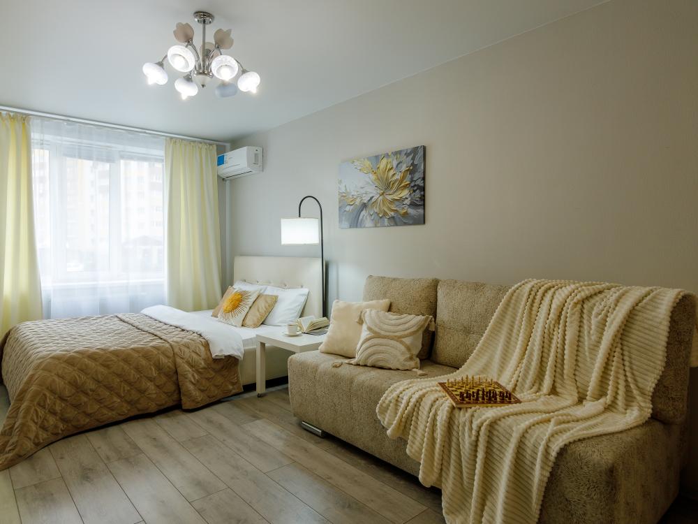 Сдаю посуточно хорошую уютную 1-комнатную квартиру в новом доме с новым ремонтом. Всегда: Идеальная чистота, свежее постельное бельё, свежие полотенца. Удобства: быт. техника, кровать 160см и одна односпальная, плита, вся посуда, утюг, гладильная доска, стиральная машина, фен, высокоскоростной интернет wi-fi, спутниковое ТВ, кондиционер, микроволновая печь, холодильник. Спальных мест 4. Рядом: ТЦ "Вивеленд, Дворец спорта лёгкой атлетики, Спортивный комплект "Грация", Кировский рынок, пиццерии, пекарни, гипермаркеты Магнит, Пятерочка, школа, поликлиника. Удобная транспортная доступность, парковка. Банки в пешей доступности. Заезд после 14.00, выезд до 12 часов следующего дня! Не сдается для мероприятий и вечеринок! Звоните! Мы всегда будем вам рады!