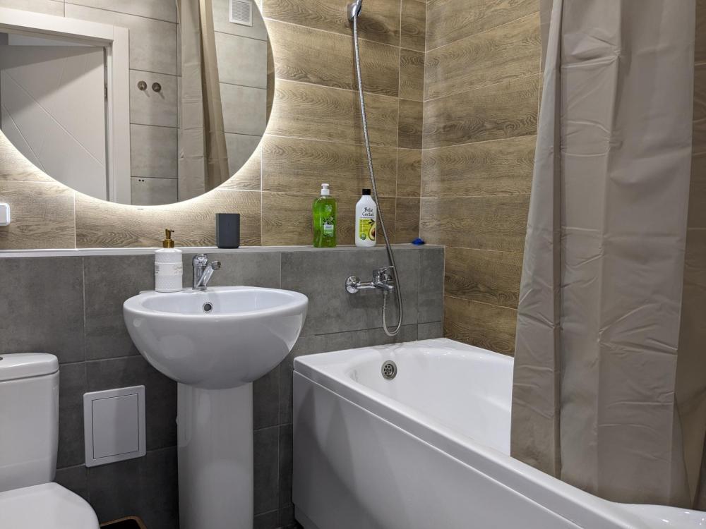 Оснащение апартаментов: Новая мебель и предметы интерьера Двуспальная кровать и двуспальный диван Высокоскоростной Wi-Fi и Smart TV Полностью укомплектованная кухня: холодильник, микроволновая печь, электрочайник, посуда Фен, утюг, стиральная машина и сушилка для белья Чистое постельное белье и махровые полотенца Имеется Кондиционер