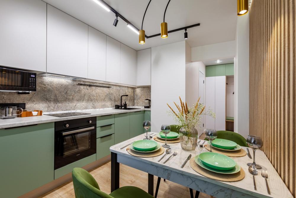 Для проживания есть все необходимое: широкая удобная кровать 160 на 200, удобный раскладной диван. Вся необходимая посуда для приготовления пищи. Бытовая техника: холодильник, электроплита + вытяжка, духовой шкаф, электрический чайник, микроволновая печь. Телевизор (кабельное ТВ - 170 каналов), стиральная машина. Постельное белье, полотенца, фен, средства личной гигиены. Бытовые моющие средства утюг, гладильная доска, сушилка для белья. Бесплатный Wi-Fi 100 Мбит/с