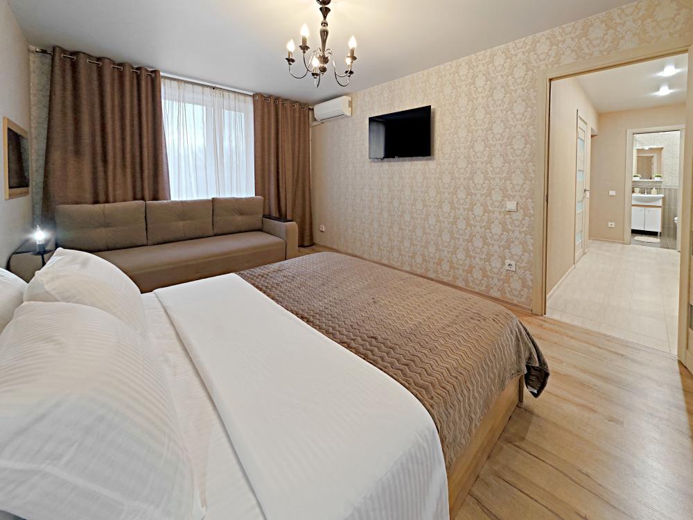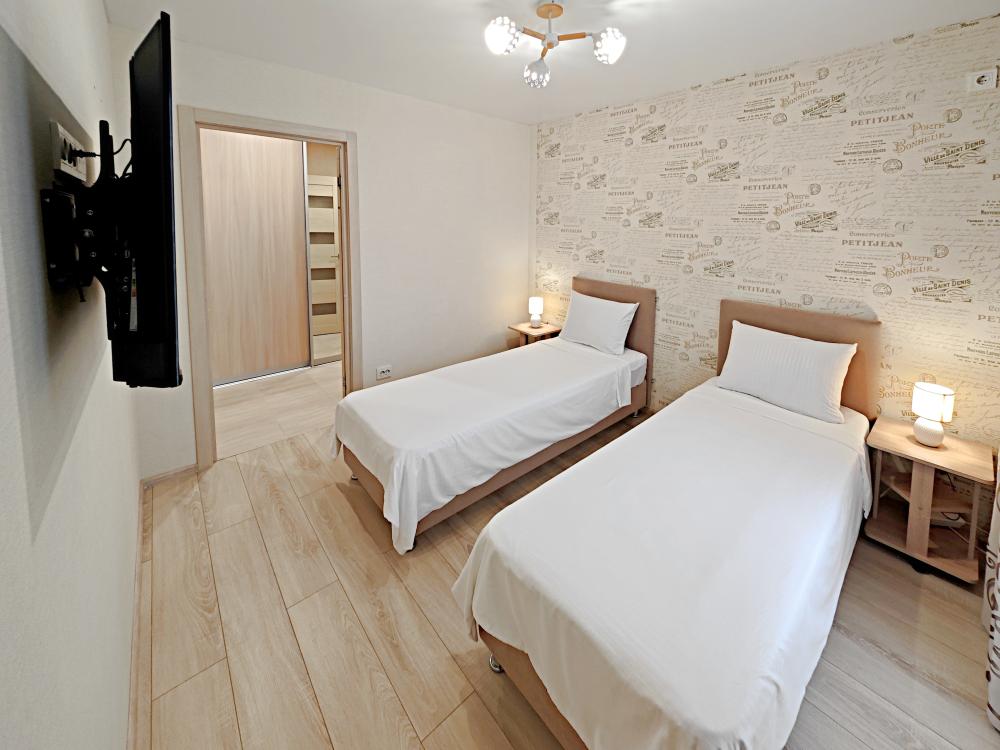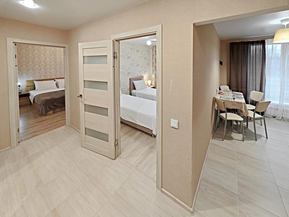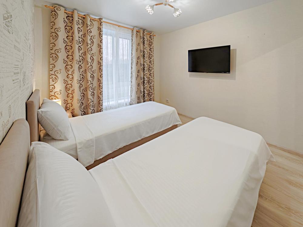Апартаменты в микрорайоне Крутые Ключи. Для размещения до 6 гостей. Уютные и чистые квартиры с хорошим ремонтом. После каждого гостя производиться уборка с дезинфицирующими средствами. Обязательная смена постельного белья и полотенец. Апартаменты полностью оборудованы, есть все необходимое: кровать с комфортным ортопедическим основанием, два удобных раскладных дивана, бесплатный Wi-fi, кабельное и смарт ТВ, вся необходимая посуда, чай, кофе, сахар, соль, перец, масло. Шампунь, гель для душа, мыло. Бытовая техника: стиральная машинка, микроволновка, плита с духовкой, эл.чайник, фен, гладильная доска, утюг.