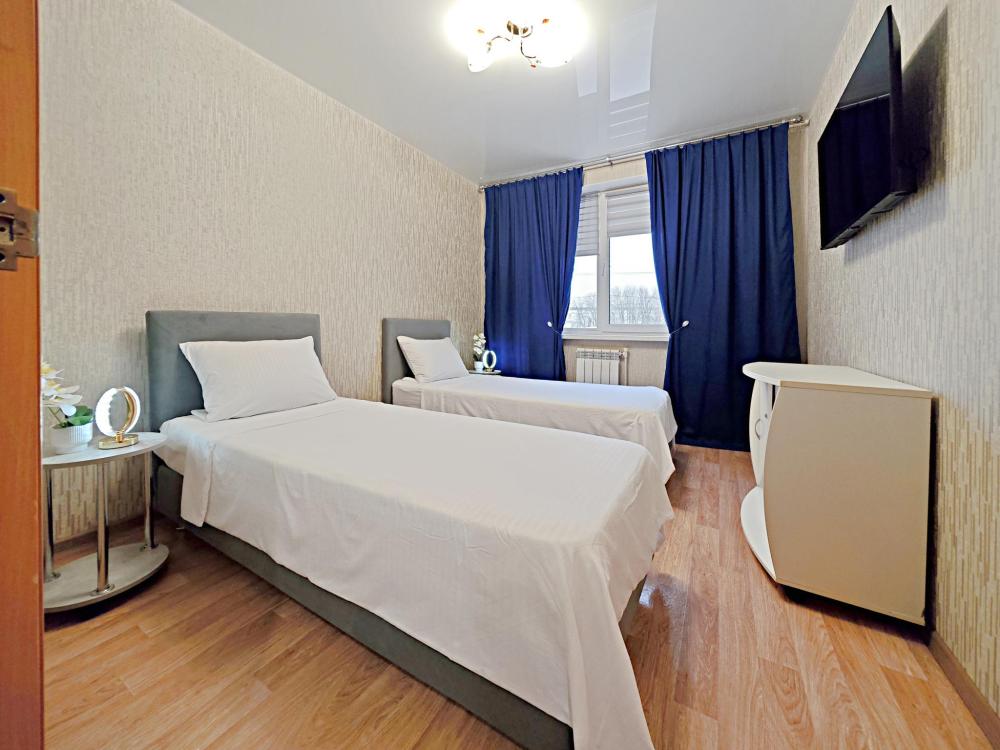 Апартаменты в микрорайоне Крутые Ключи. Для размещения до 6 гостей. Уютные и чистые квартиры с хорошим ремонтом. После каждого гостя производиться уборка с дезинфицирующими средствами. Обязательная смена постельного белья и полотенец. Апартаменты полностью оборудованы, есть все необходимое: кровать с комфортным ортопедическим основанием, два удобных раскладных дивана, бесплатный Wi-fi, кабельное и смарт ТВ, вся необходимая посуда, чай, кофе, сахар, соль, перец, масло. Шампунь, гель для душа, мыло. Бытовая техника: стиральная машинка, микроволновка, плита с духовкой, эл.чайник, фен, гладильная доска, утюг.
