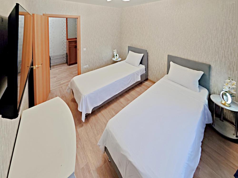 Апартаменты в микрорайоне Крутые Ключи. Для размещения до 6 гостей. Уютные и чистые квартиры с хорошим ремонтом. После каждого гостя производиться уборка с дезинфицирующими средствами. Обязательная смена постельного белья и полотенец. Апартаменты полностью оборудованы, есть все необходимое: кровать с комфортным ортопедическим основанием, два удобных раскладных дивана, бесплатный Wi-fi, кабельное и смарт ТВ, вся необходимая посуда, чай, кофе, сахар, соль, перец, масло. Шампунь, гель для душа, мыло. Бытовая техника: стиральная машинка, микроволновка, плита с духовкой, эл.чайник, фен, гладильная доска, утюг. Идеальное расположение - в шаговой доступности супермаркеты, Икея, Ашан, Миндаль, магазины для шоппинга в ТЦ Мега. Всегда есть место для парковки вашего авто. 30 мин до аэропорта. 15 мин до стадиона АРЕНА. Удобный въезд и выезд из города.