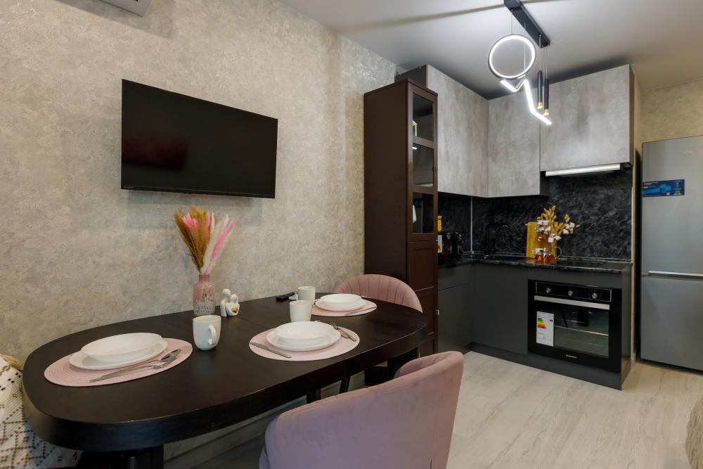 Квартира расположена на 22-м этаже 27-этажного дома. Вас ожидает: идеальная чистота, свежие постельные бельё и полотенца, Полностью оборудованная кухня, микроволновая печь, холодильник, стиральная машина, утюг, гладильная доска, фен, кондиционер, высокоскоростной интернет Wi-Fi, спальных мест: 2 В нашем уютном уголке вы найдете: Ароматный чай и кофе, чтобы согреться и насладиться моментом, Нежный шампунь, все кухонные приборы и многое другое.