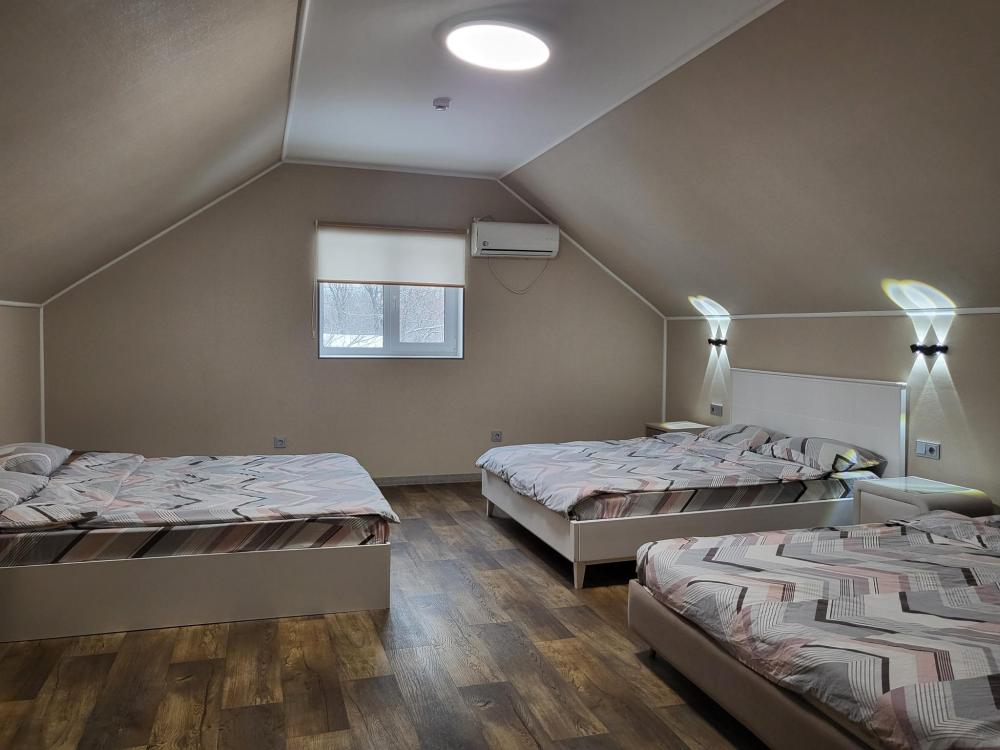 В Парк-отеле мы предлагаем размещение не только в наших коттеджах, но и в номерах гостиничного типа. Уютные номера, вместимость от 4-8 человек. Номера располагаются на 2-ом этаже с видом на лес Санузел и душ на этаже. Бельё и полотенца предоставляются Выдаём отчётные документы