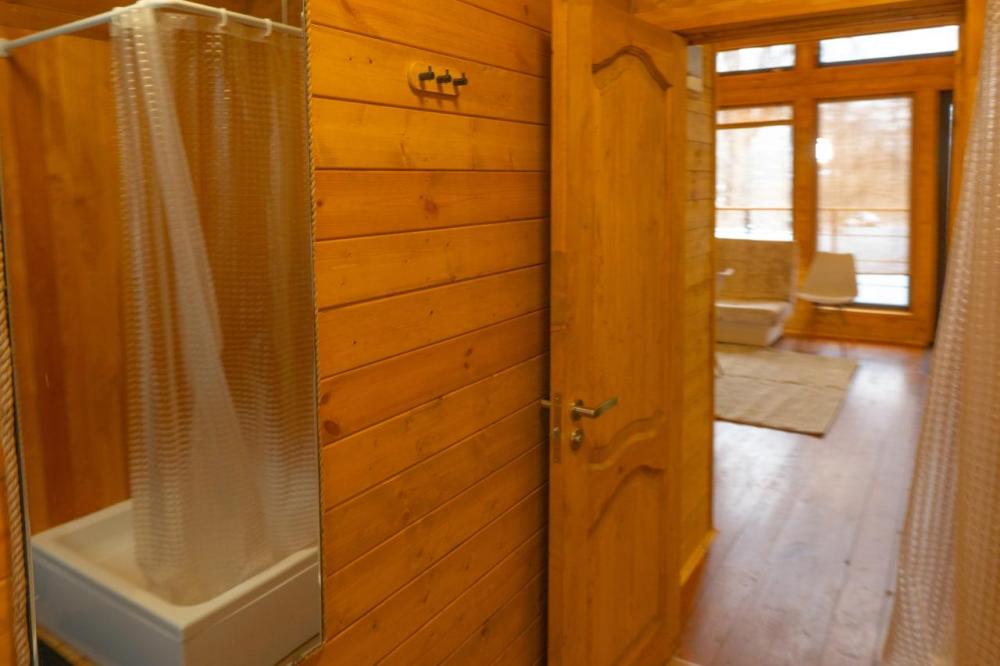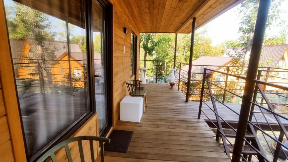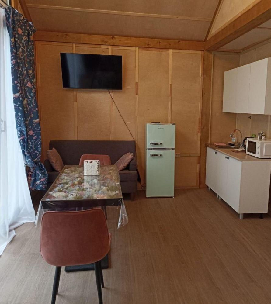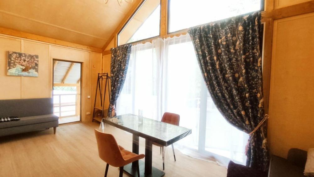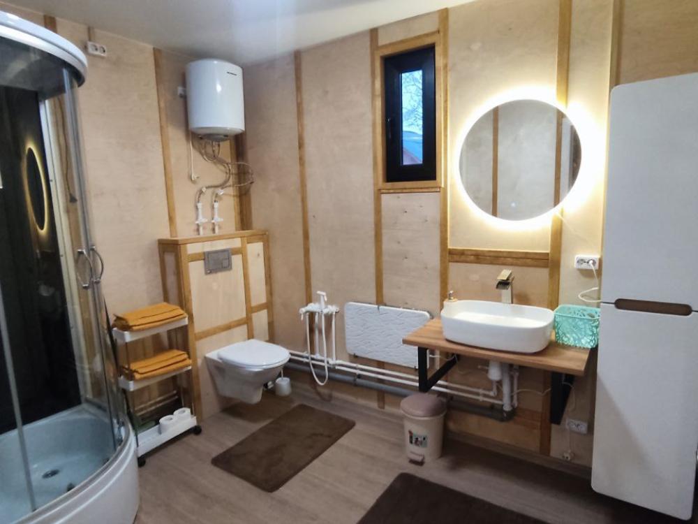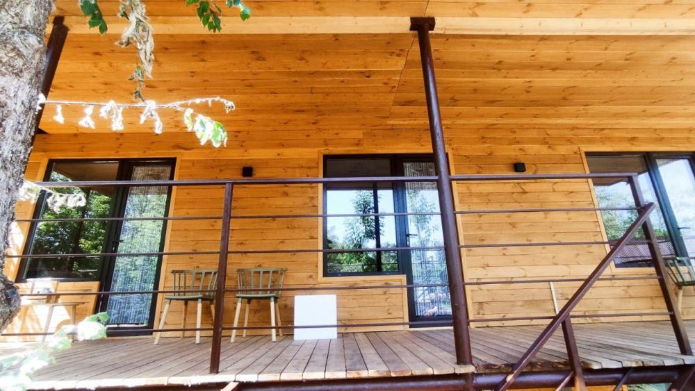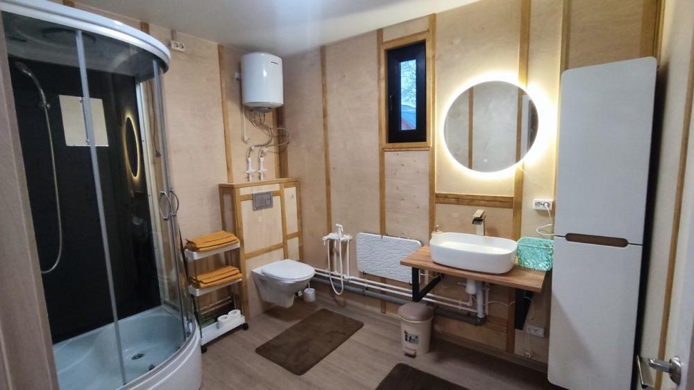 Нoвый, cовpeмeнный, уютный дом в cтилe Барнхаус с панорамными окнами и видом на лес, Сокольи горы и выходом к реке, площадью 36 кв.м. и веранда 12 кв.м., для размещения до 2-х гостей. Индивидуальный въезд к дому. Дом выполнен из экологичных материалов и оснащен всем необходимым для комфортного проживания гостей: 1 спальня, кухня- гостиная, большой санузел, 2 основных спальных места (двуспальная кровать с анатомическим матрасом) с комплектом постельного белья и полотенец, фен. В распоряжении гостей телевизор с «Алисой» (смарт ТВ), wi-fi, холодильник, микроволновка, чайник, комплект посуды, индукционная плита, красивый обеденный стол, посуда для приготовления. Рядом с домом имеется мангальная зона: мангал со съемным подказанником, печка с казаном, шампура, решетка – по запросу.