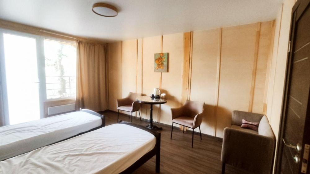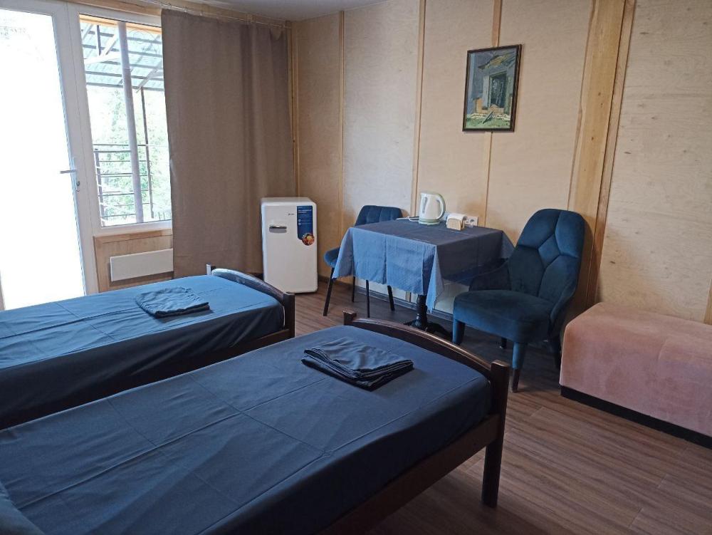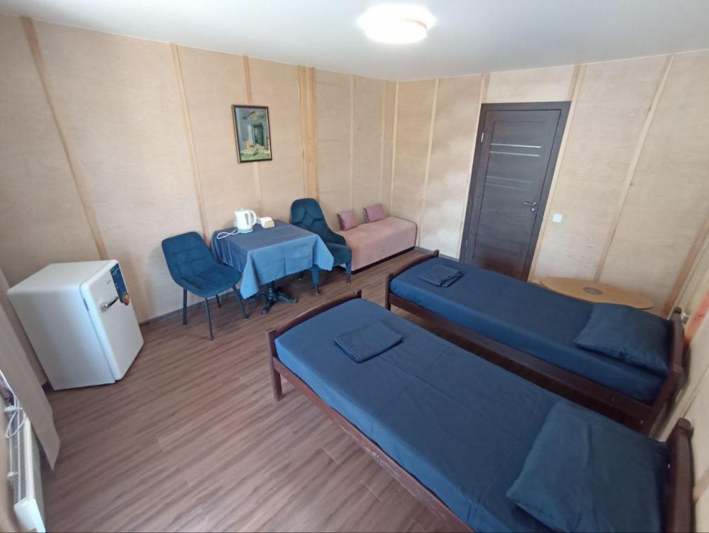 Двухместный номер стандарт в 2-х этажном корпусе площадью 20 кв.м. Номер современный, со всеми удобствами (санузел в номере: душевая кабина, раковина, унитаз, гигиенический душ), холодильник, стол, электрический чайник, чайная пара, кресла/стулья/ мягкая мебель. Две односпальные кровати (80х190) с ортопедическими матрасами, есть возможность совмещения кроватей. В номере и на веранде запрещено: приготовление пищи, курение, складирование мусора, содержание животных.
