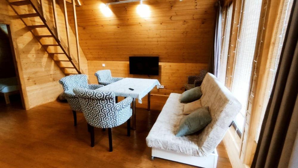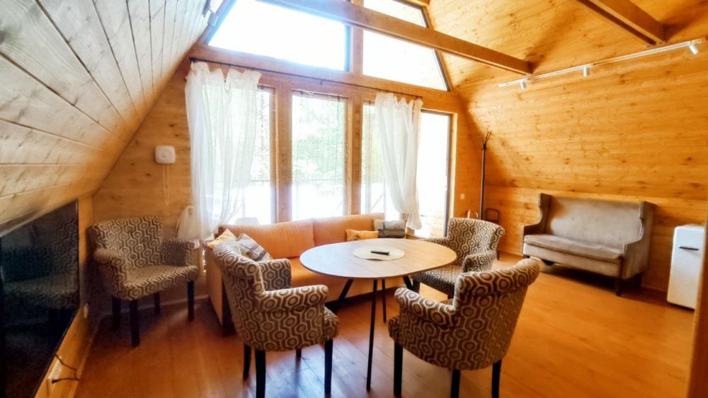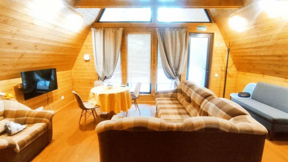 Нoвый, cовpeмeнный, уютный двухэтажный дом в cтилe А-framе с панорамными окнами и видом на реку и Сокольи горы, площадью 65 кв.м., для размещения до 4-х гостей. Дом выполнен из экологичных материалов и оснащен всем необходимым для комфортного проживания гостей: 4 основных спальных места (две двуспальные кровати), комплект постельного белья и полотенец. На первом этаже: кухня- гостиная, ванная комната с туалетом и душем, спальня. На втором этаже: спальня. В распоряжении гостей телевизор с «Алисой» (смарт ТВ), wi-fi, холодильник, микроволновка, чайник, комплект посуды, индукционная плита, компактный раскладной обеденный стол, посуда для приготовления – по запросу. Рядом с домом имеется мангальная зона: мангал со съемным подказанником, печка с казаном, шампура, решетка – по запросу.
