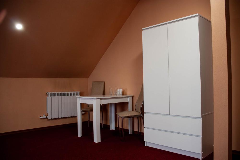 Двухкомнатный номер "Комфорт": - Двуспальная кровать 160*200 - Прикроватные тумбы 2 шт. - Набор белых полотенец ( 2 больших, 2 маленький, полотенце для ног), зубной набор - Холодильник - Прихожая - Обеденный стол + мягкая зона отдыха, чайная станция, чай, сахар - Стул 2 шт. - Вешалки - Стаканы - Туалетные принадлежности, фен - Питание по предварительной договорённости - Мини-бар - Дополнительно можем предоставить халаты, тапочки.