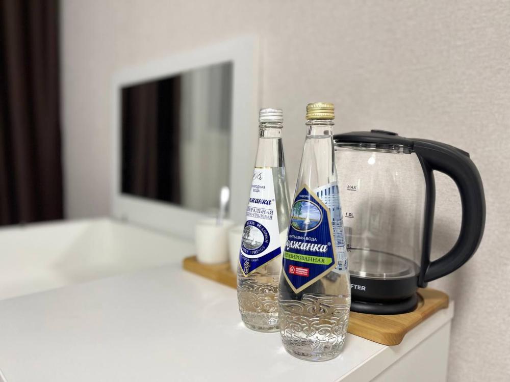 Площадь - 20 м² Число комнат - 1 Вместимость - 1~2 чел двуспальная кровать прикроватные тумбы комод с зеркалом LED-TV 40 дюймов, смарт тв сплит-система зона отдыха с диваном и креслом шкаф холодильник шторы блэкаут ковровое напольное покрытие чайный набор (чайник, наборы для чая и кофе) вода ВАННАЯ КОМНАТА с/у с душевой
