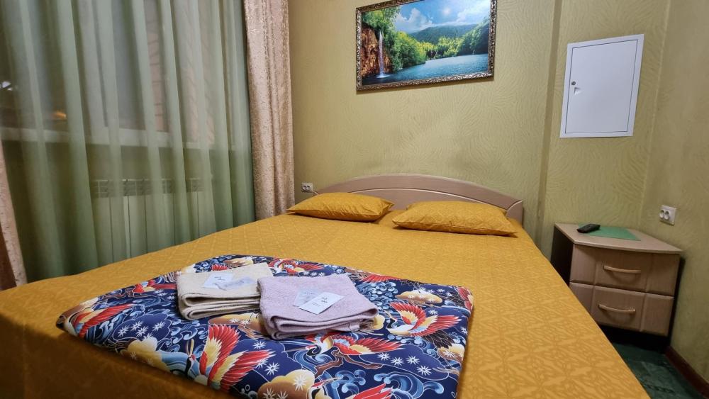Однокомнатный номер комфорт общей площадью 20 кв.м. для размещения до 2-х гостей. В каждом номере предусмотрены: двуспальная кровать, санузел с душем, кондиционер, холодильник, кабельное ТВ, свежее постельное бельё и полотенца, wi-fi интернет.