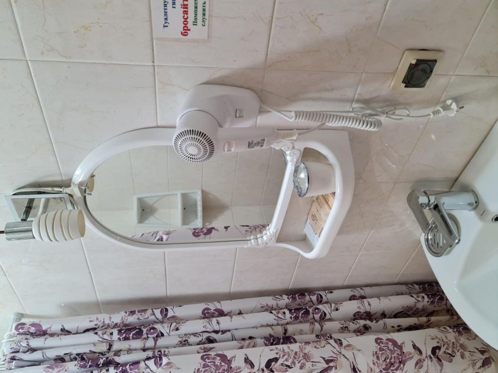 Номер с 1,5-спальной кроватью. Новая мебель. В номере установлены кондиционер, телевизор, холодильник, шкаф для одежды, тумбочка, журнальный столик, пуф, мини-прихожая, телефон внутренний, чайник, фен (по запросу). Утюг и гладильная доска в общей зоне. Пользование стиральной машиной за дополнительную плату. Кулер с водой на этаже. Душ и туалет в номере. Предоставляются тапочки, шампунь и гель для душа.